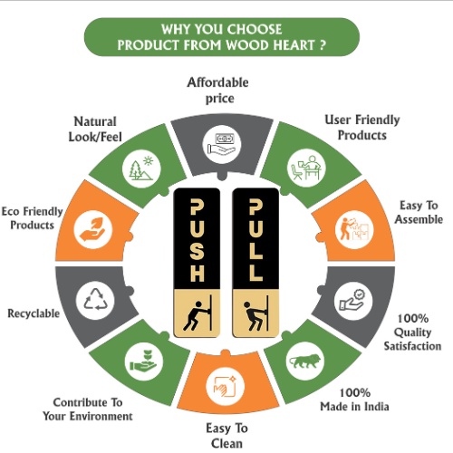 Stylish and functional black-and-gold door sign plates clearly indicating “PUSH” and “PULL” with accompanying pictograms for instant understanding. The modern split-color design with bold typography ensures excellent visibility, making them ideal for offices, commercial spaces, and hospitality environments.