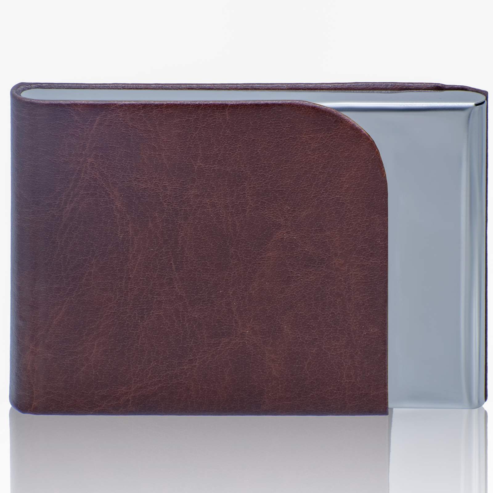 Classic Brown Leatherette Business Card Holder with Chrome Edge