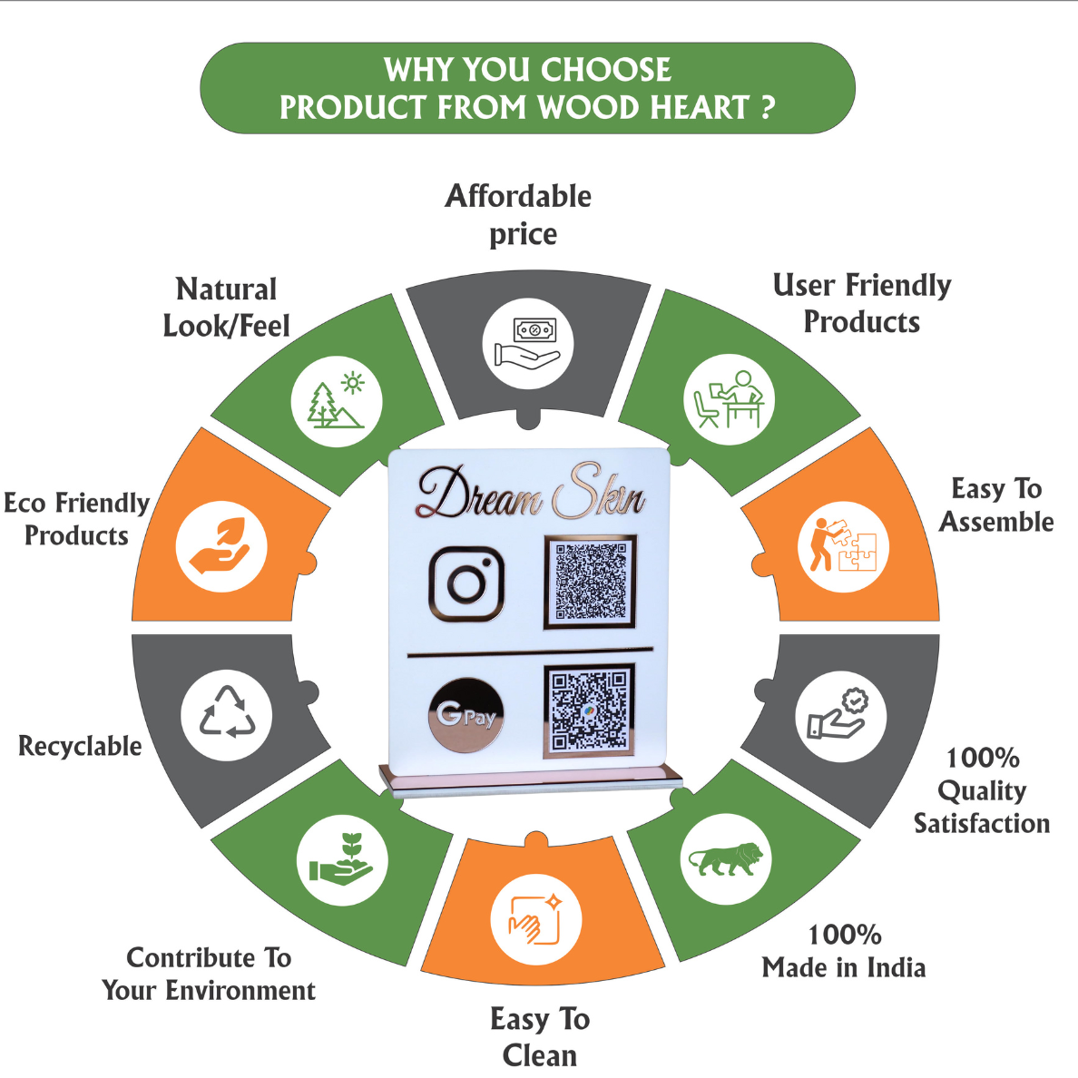 - Dual Functionality: Instagram QR for social media connection and GPay QR for digital payments.