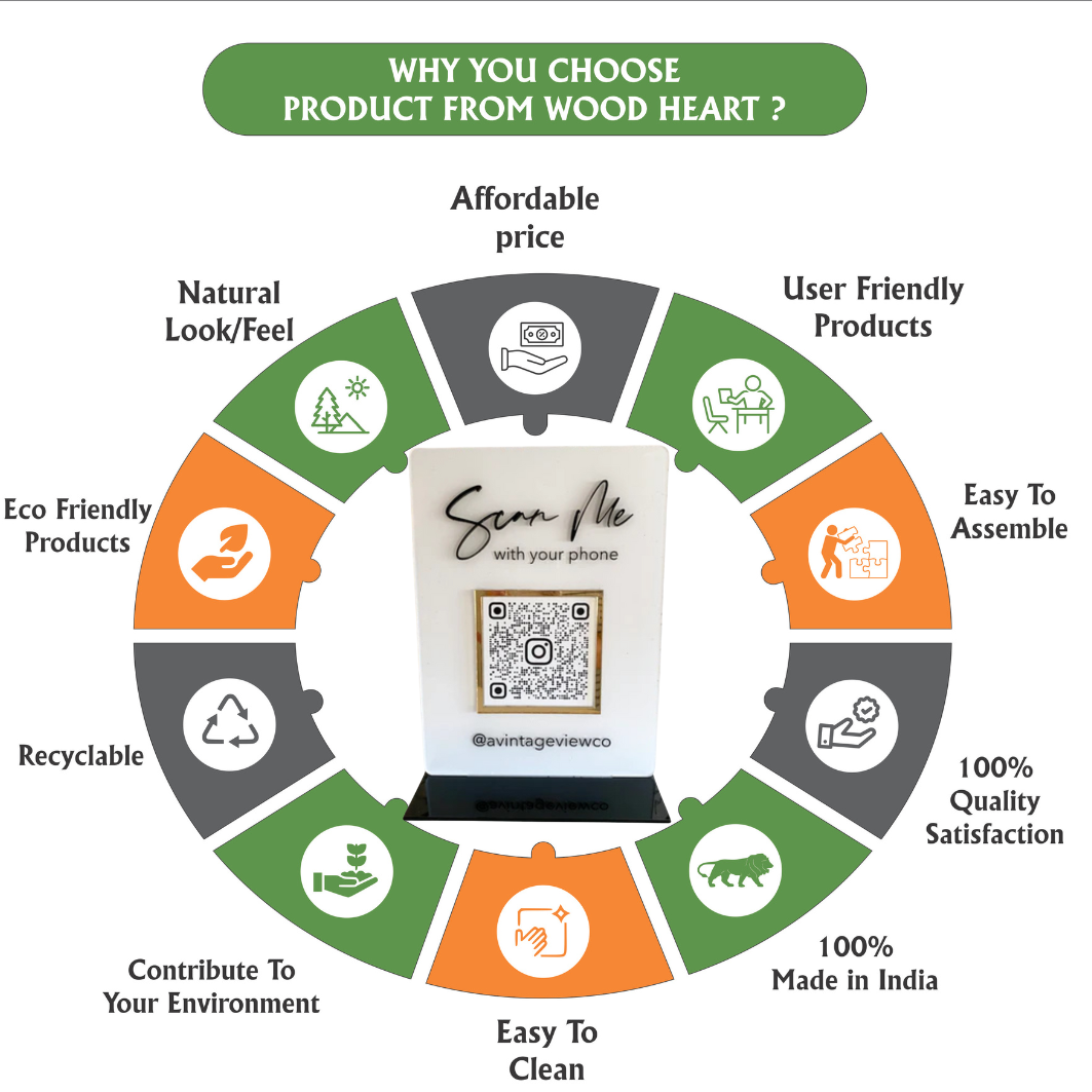 A sleek and modern acrylic display stand featuring a scannable Instagram QR code for quick and easy profile access. Perfect for cafes, retail stores, events, and exhibitions to boost social media engagement. The stand has a clean white background, stylish “Scan Me” text, and a sturdy black acrylic base for stability.