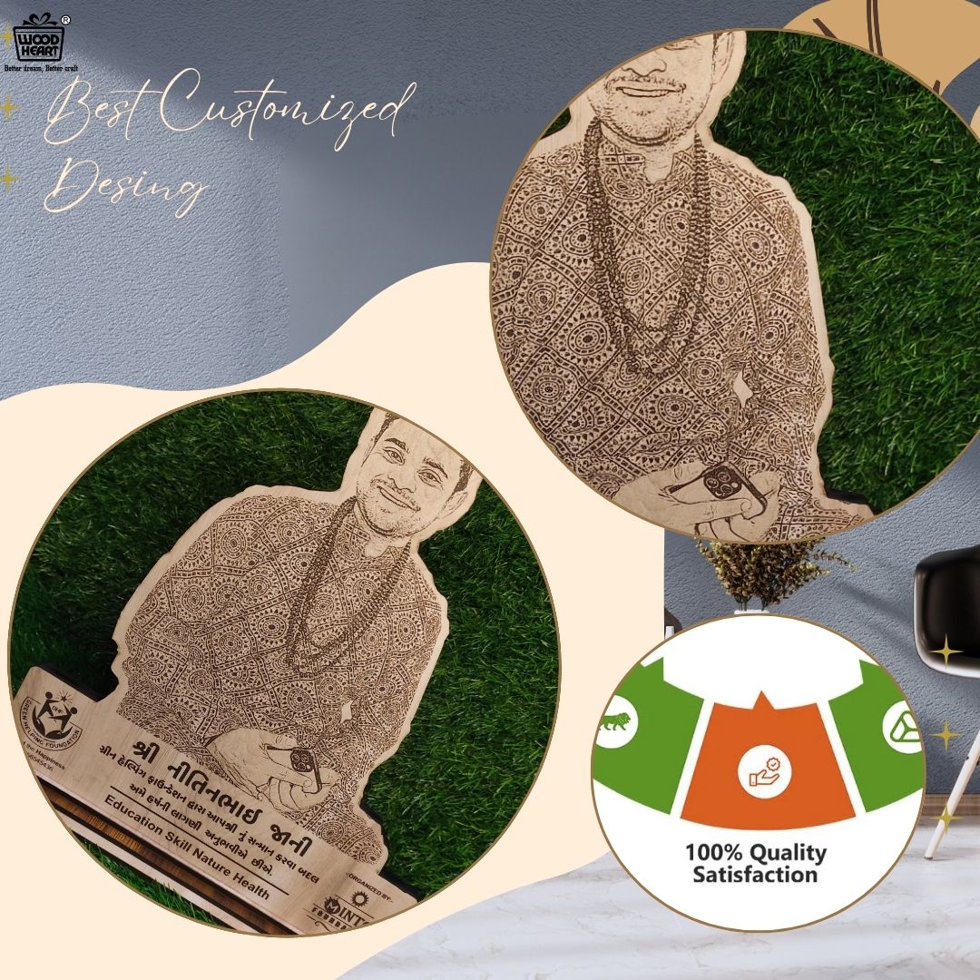 Celebrate achievements and memories in a unique way with this Custom Wooden Engraved Portrait Trophy by Wood Heart. Expertly laser-engraved with precision, this handcrafted wooden cutout beautifully captures portraits and text details, making it perfect for awards, appreciation gifts, or personalized keepsakes. Designed with a sturdy wooden base and fine engraving, it adds an elegant touch to any desk or display shelf. Ideal for corporate events, personal milestones, or customized gifting.