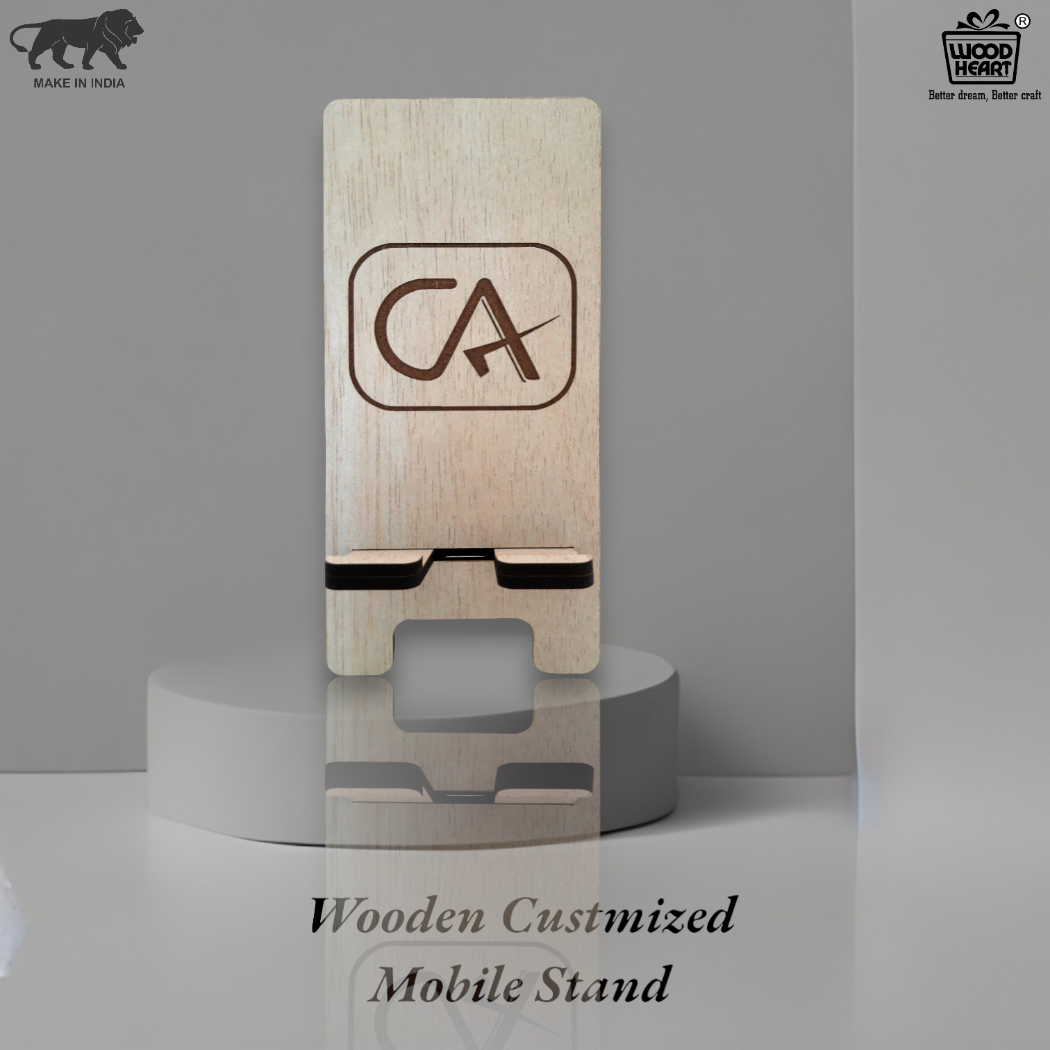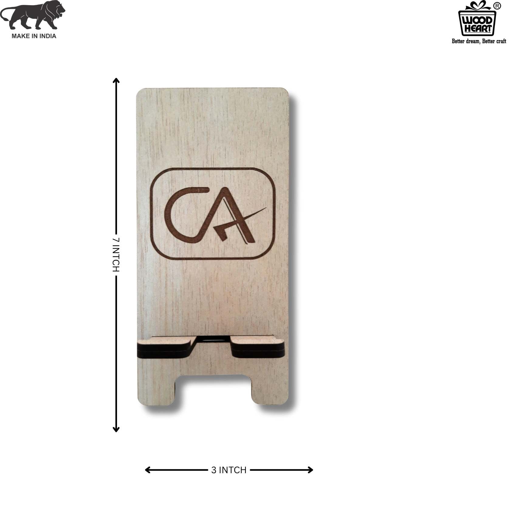 Customized Wooden Mobile Stand for CA – Laser Engraved Chartered Accountant Logo