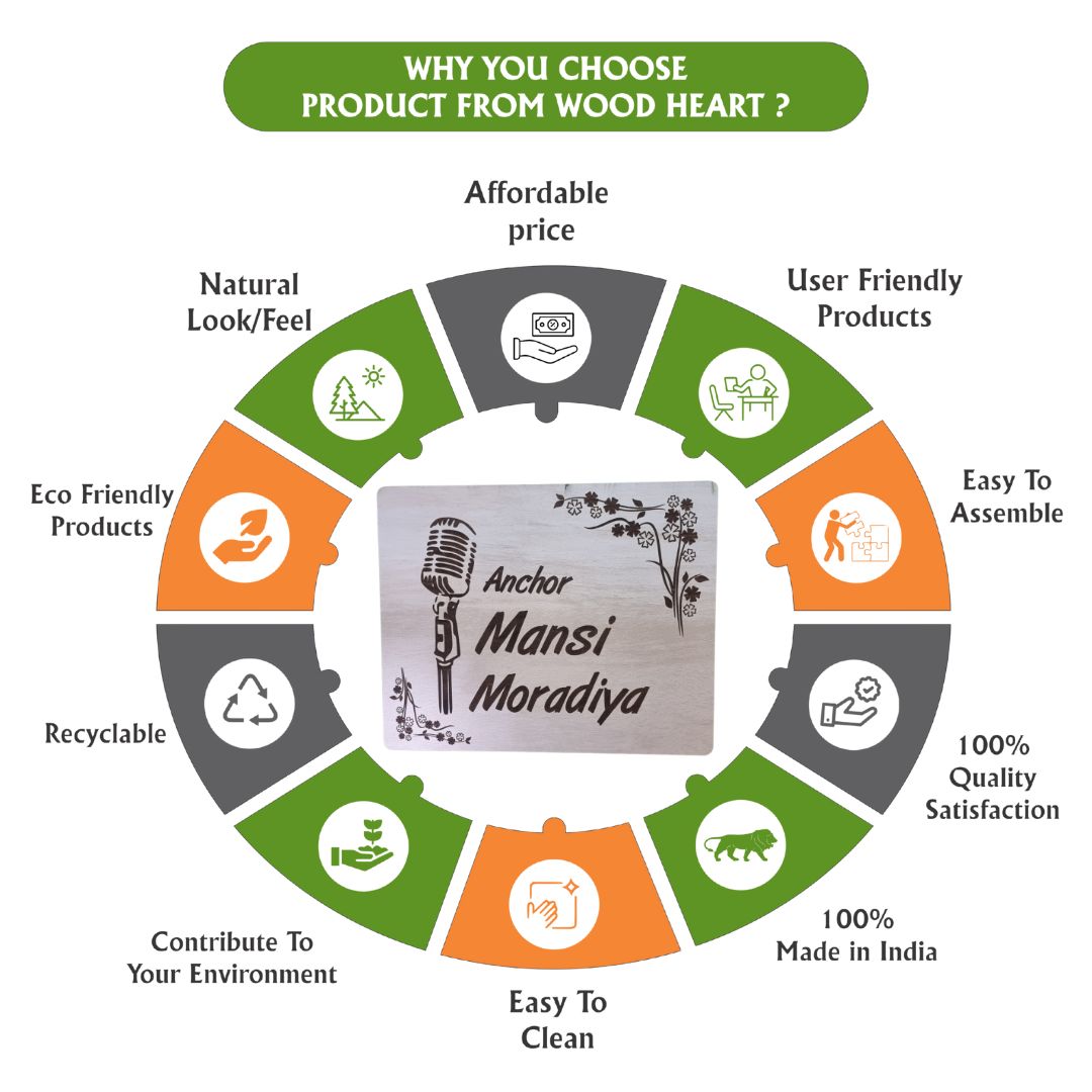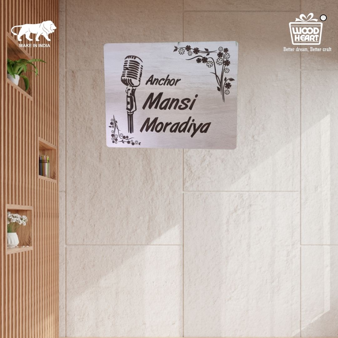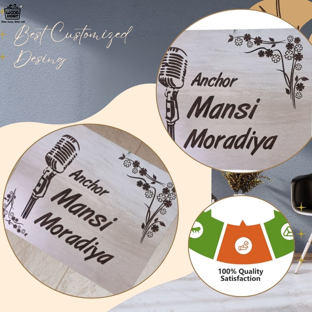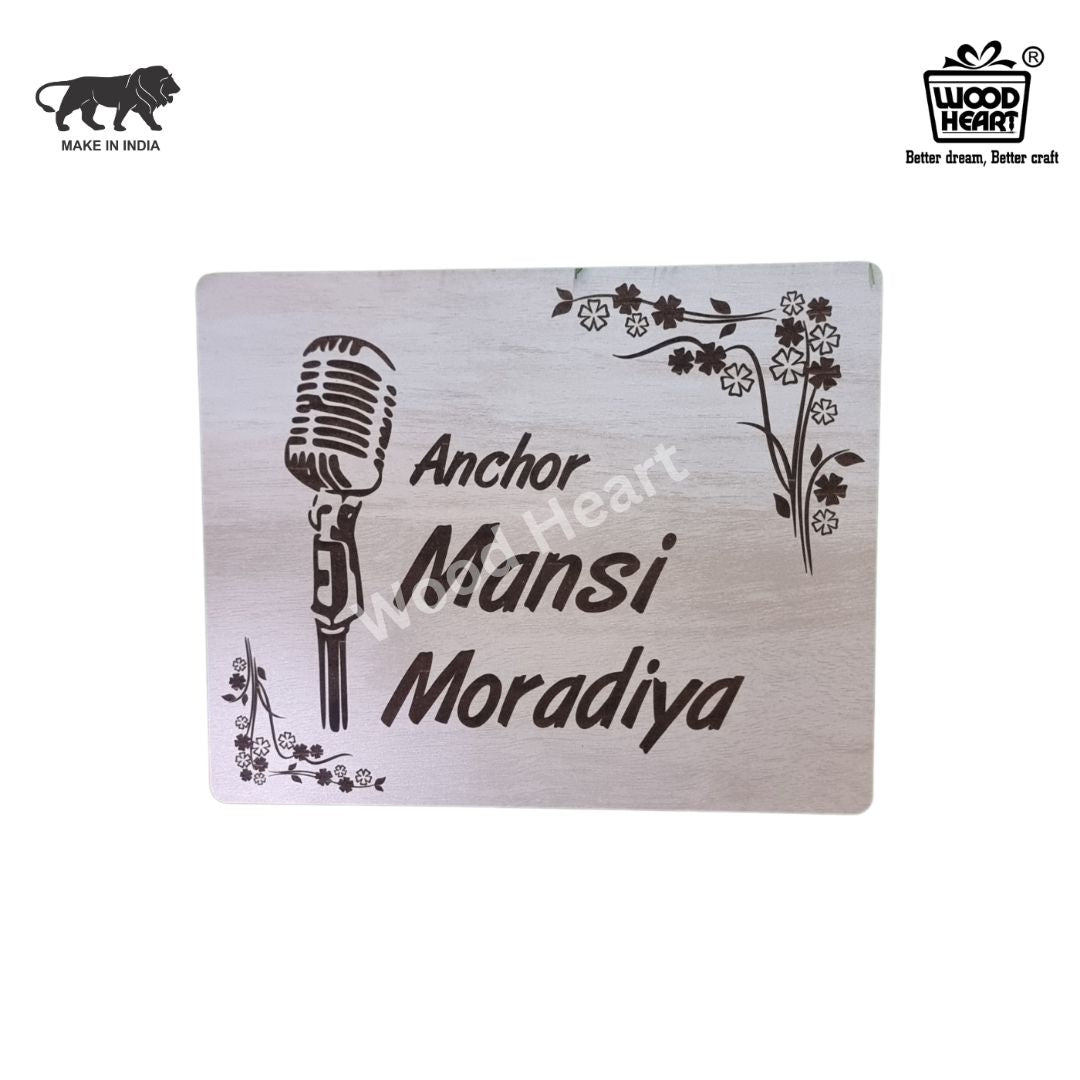 Celebrate your passion for anchoring with this Customized Wooden Nameplate for Anchor. Expertly laser-engraved with your name and a stylish microphone design, this plaque perfectly captures your professional identity. The floral patterns add a graceful touch, making it suitable for your studio, desk, or gifting to a talented anchor.