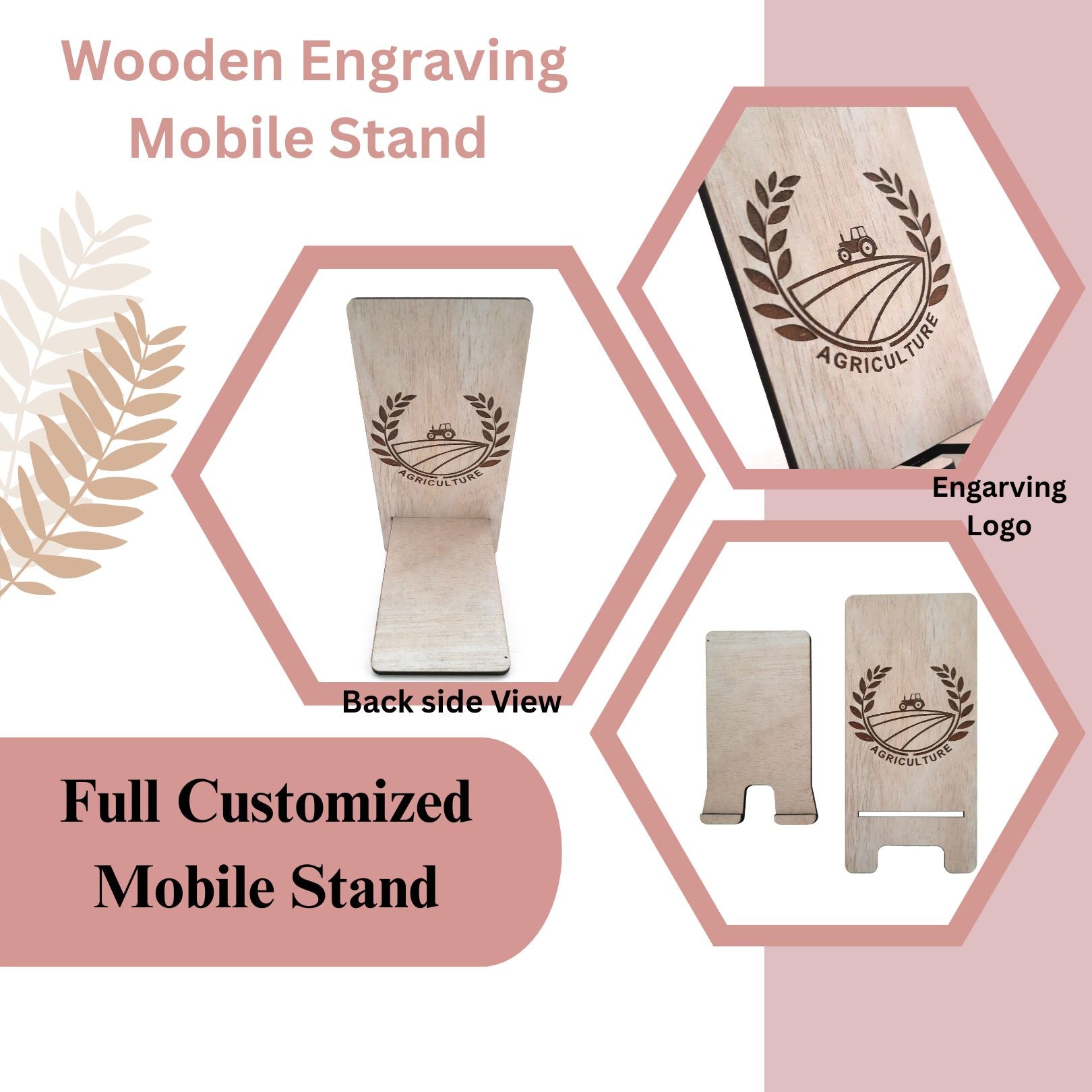 Eco-Friendly Wooden Phone Stand with Engraved Agriculture Motif