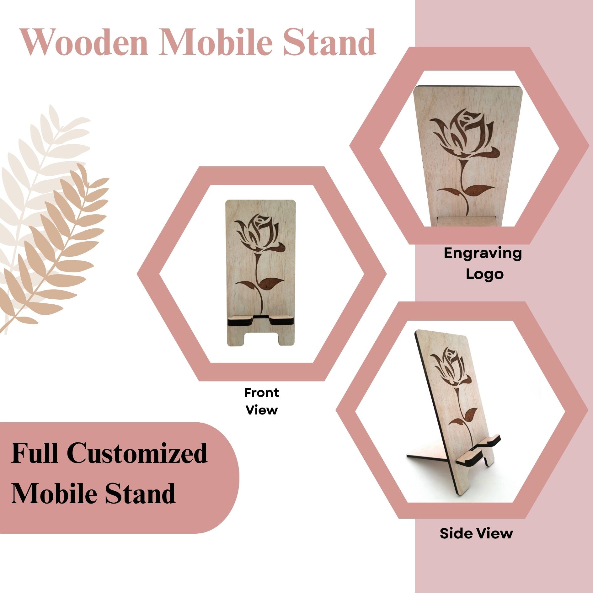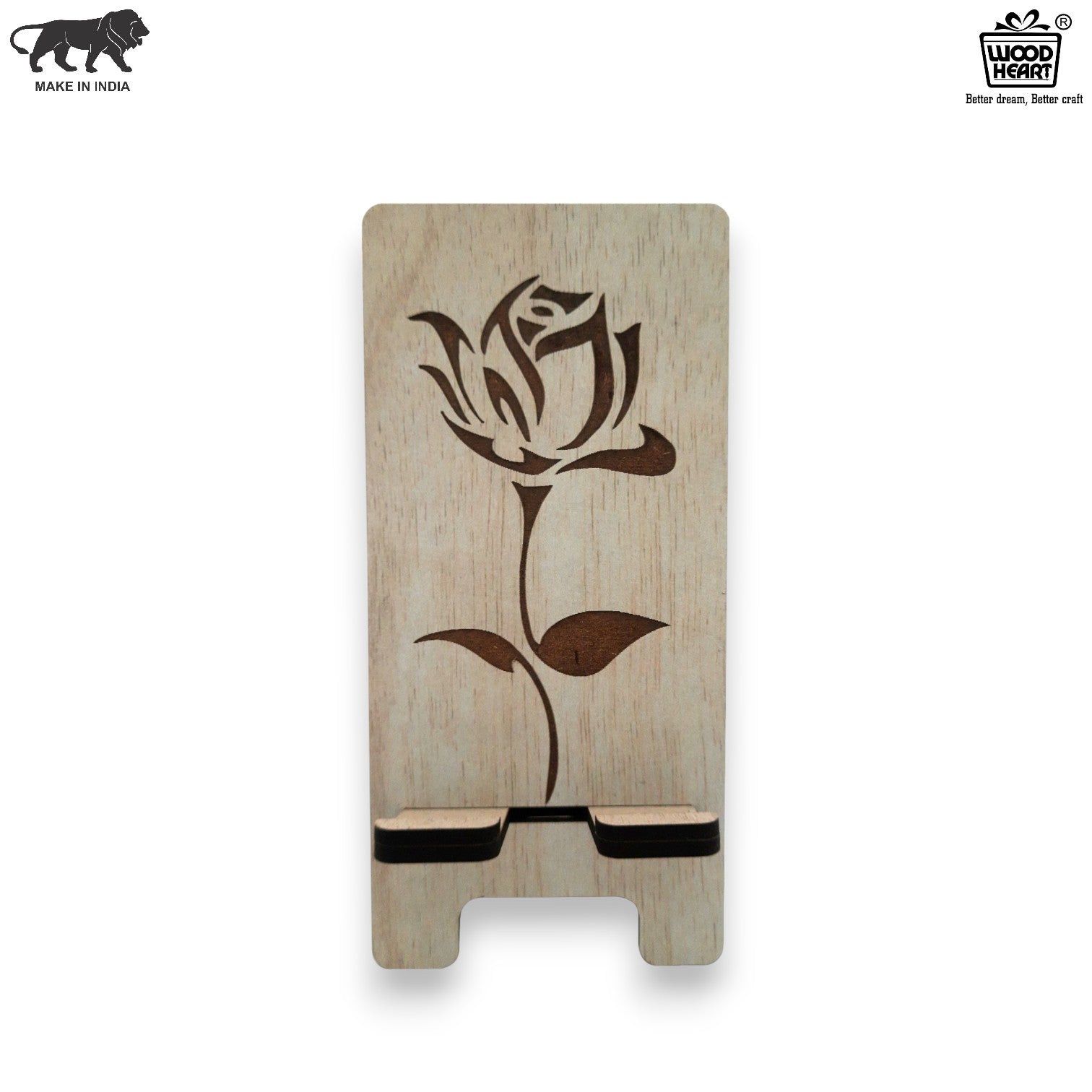 Elegant Rose Design Wooden Mobile Stand – Laser Engraved Floral Pattern
