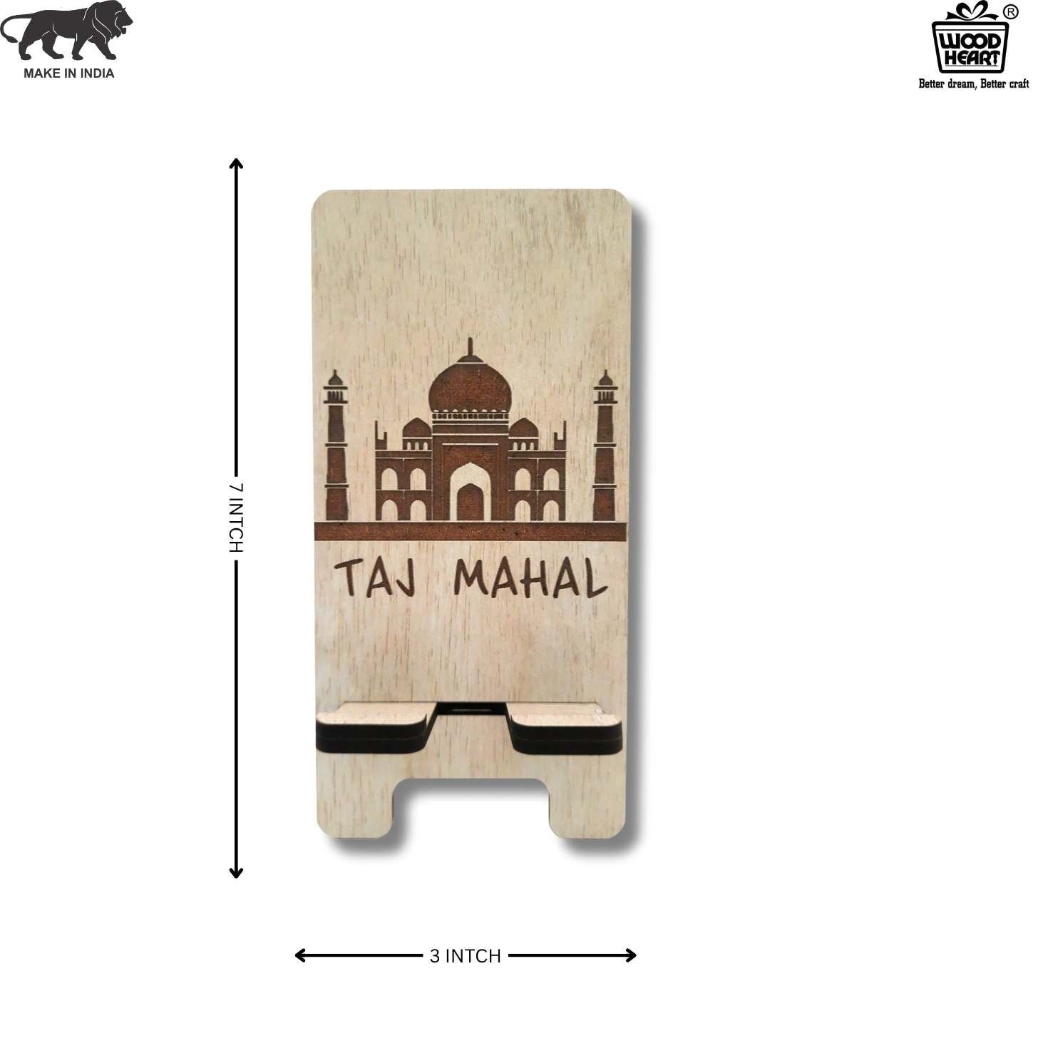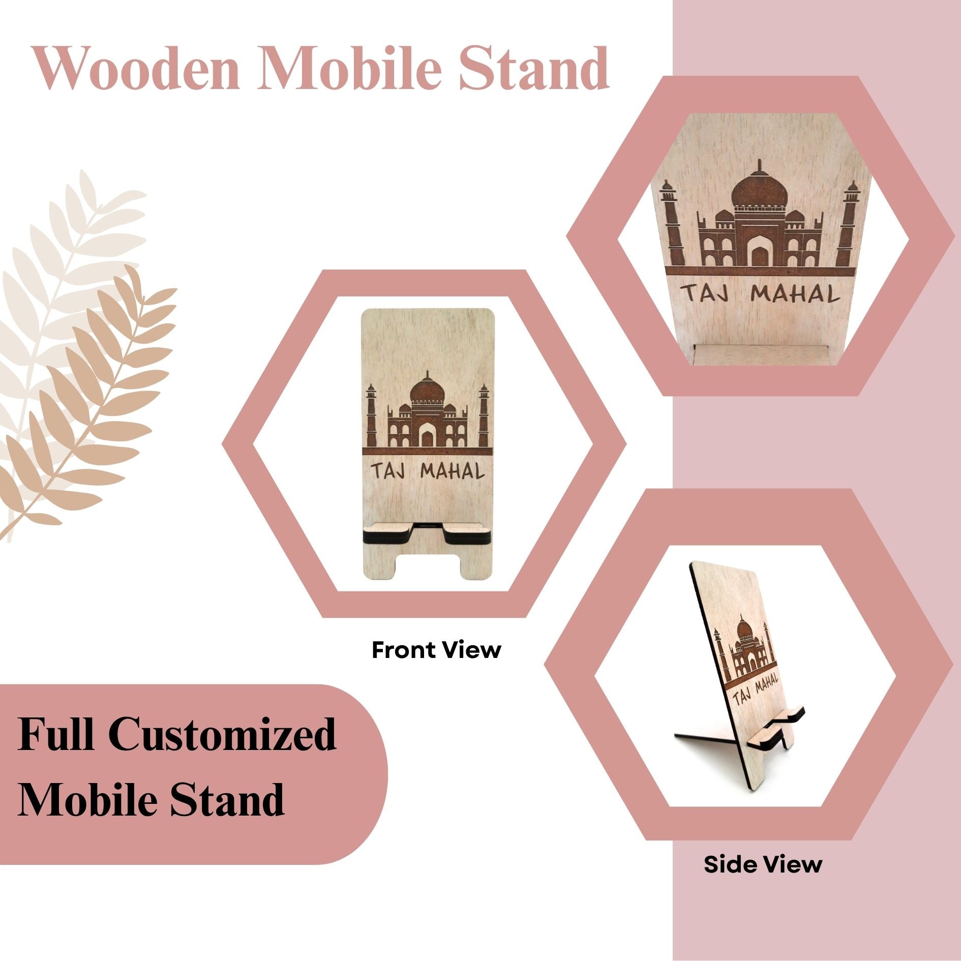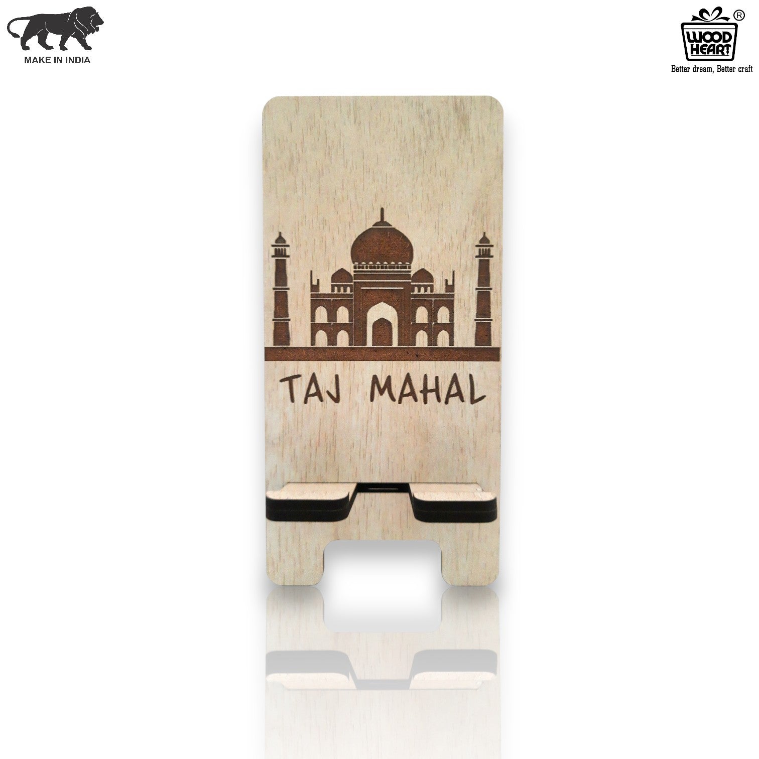 Elegant Taj Mahel Design Wooden Mobile Stand – Laser Engraved Floral Pattern