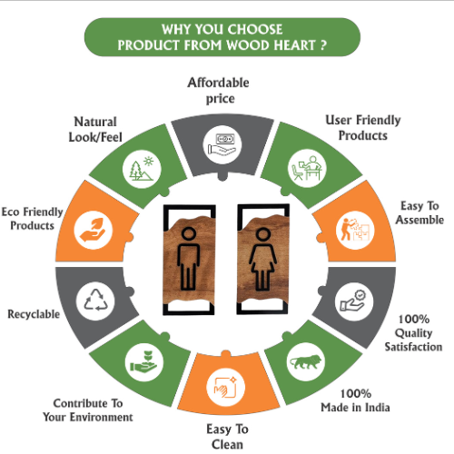 This premium set of wooden restroom signs combines natural wood charm with a modern minimalist look. Each sign features a gender-specific cut-out icon framed in sleek black, offering a stylish and highly visible restroom indicator. The wave-pattern wood grain and contrasting frame make these signs a perfect blend of functionality and décor for restaurants, cafes, offices, and hotels.
