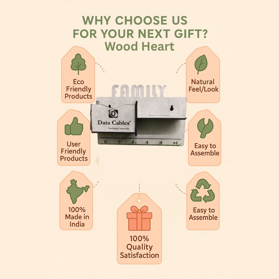 FAMILY Wall Mounted Key Holder & Mail Organizer – With Branding Pocket