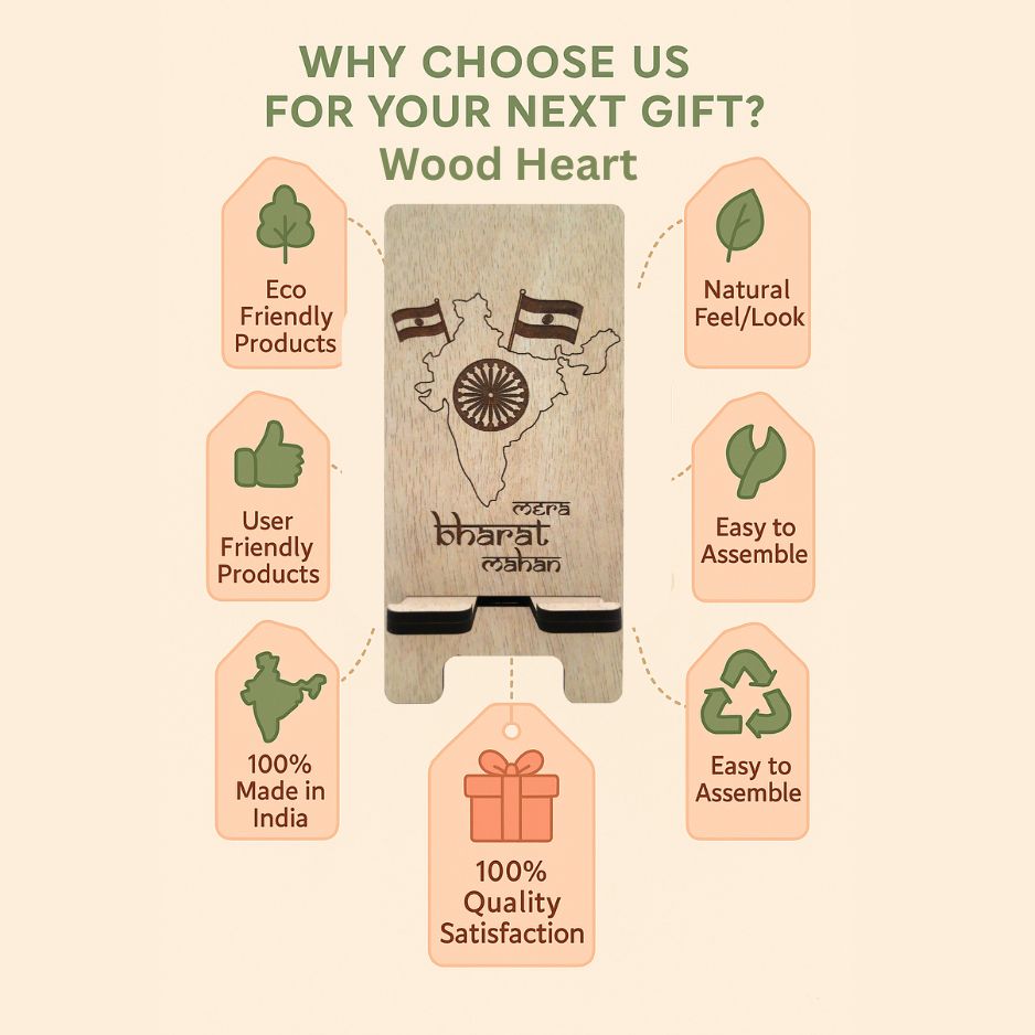 Salute the spirit of our soldiers with this Veer Jawan Wooden Customized Mobile Stand. Engraved with the iconic war memorial design and the text "वीर जवान", this stand is a powerful reminder of bravery and sacrifice. Perfect for patriots, defense personnel, and those who proudly support our armed forces.