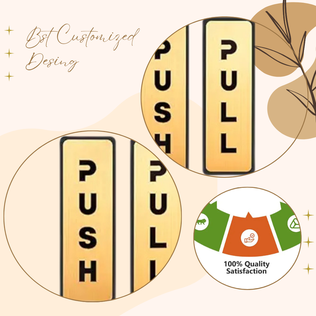 Stylish gold-colored door sign plates with bold vertical "PUSH" and "PULL" lettering for clear direction and easy recognition. Perfect for offices, hotels, restaurants, and upscale commercial spaces, these signs combine functionality with a premium aesthetic.