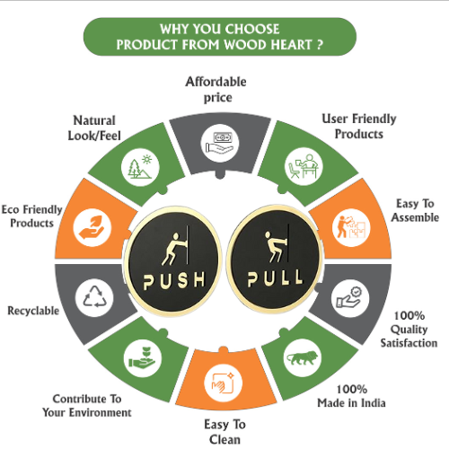 Elegant round door signs featuring gold “PUSH” and “PULL” text with matching pictograms on a matte black background. The gold border and lettering add a premium, stylish touch, making them perfect for hotels, offices, restaurants, and upscale interiors. Designed for quick identification and a sophisticated look.