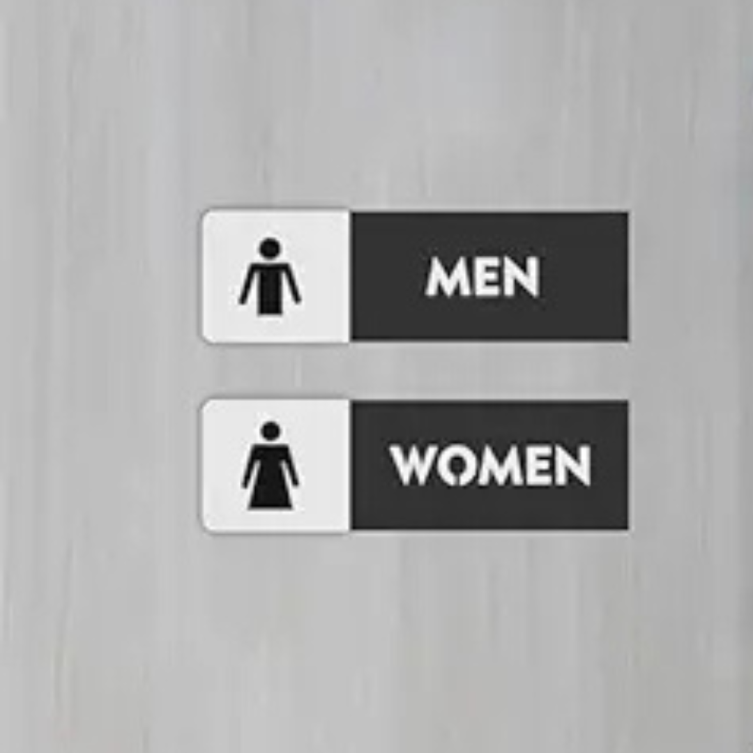 A sleek and minimalistic pair of rectangular washroom signs designed to clearly indicate male and female restrooms. Each sign features a gender-specific icon and bold “MEN” or “WOMEN” text in a high-contrast black-and-white design for maximum readability. Perfect for offices, hotels, restaurants, malls, and public facilities, these signs offer both clarity and a modern aesthetic.