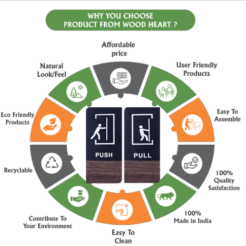 A stylish pair of push and pull door signs featuring clear pictograms for easy recognition. Designed with a sleek black background and a warm wood-textured accent, these signs blend functionality with contemporary aesthetics, making them ideal for offices, cafes, hotels, and retail spaces.