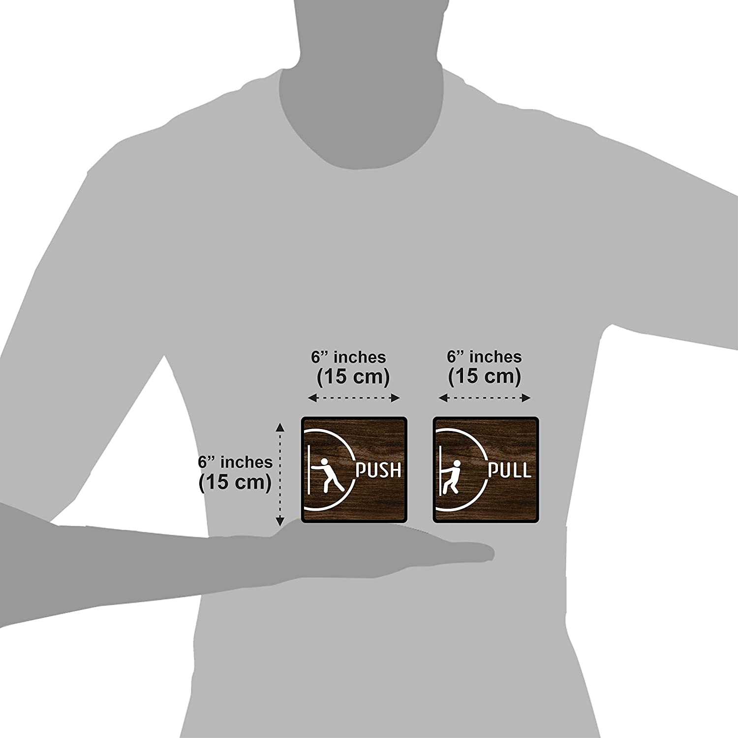 A sleek and contemporary set of square wooden door signs with “Push” and “Pull” instructions, featuring minimalist stick figure icons for instant recognition. Designed with a dark wood background and crisp white engraving, these signs are perfect for offices, cafes, restaurants, and any modern space that values both style and functionality.