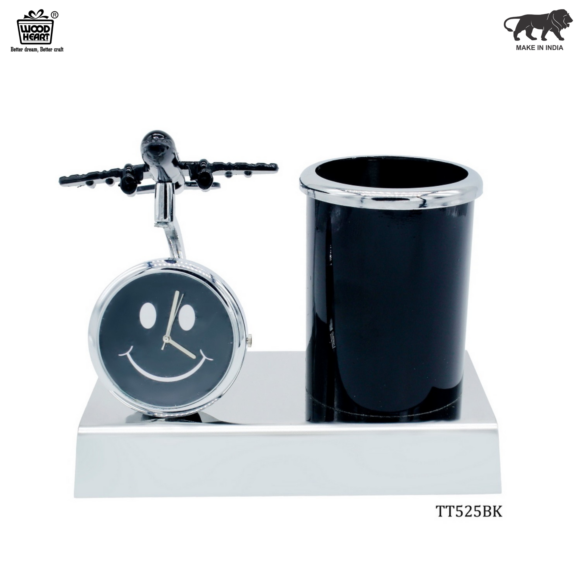Add charm and function to your workspace with this elegant black-themed desk organizer. Featuring a smiley-faced clock with a mounted mini airplane, this piece makes organization playful and stylish. Ideal for desks at home, offices, or for gifting to aviation lovers.