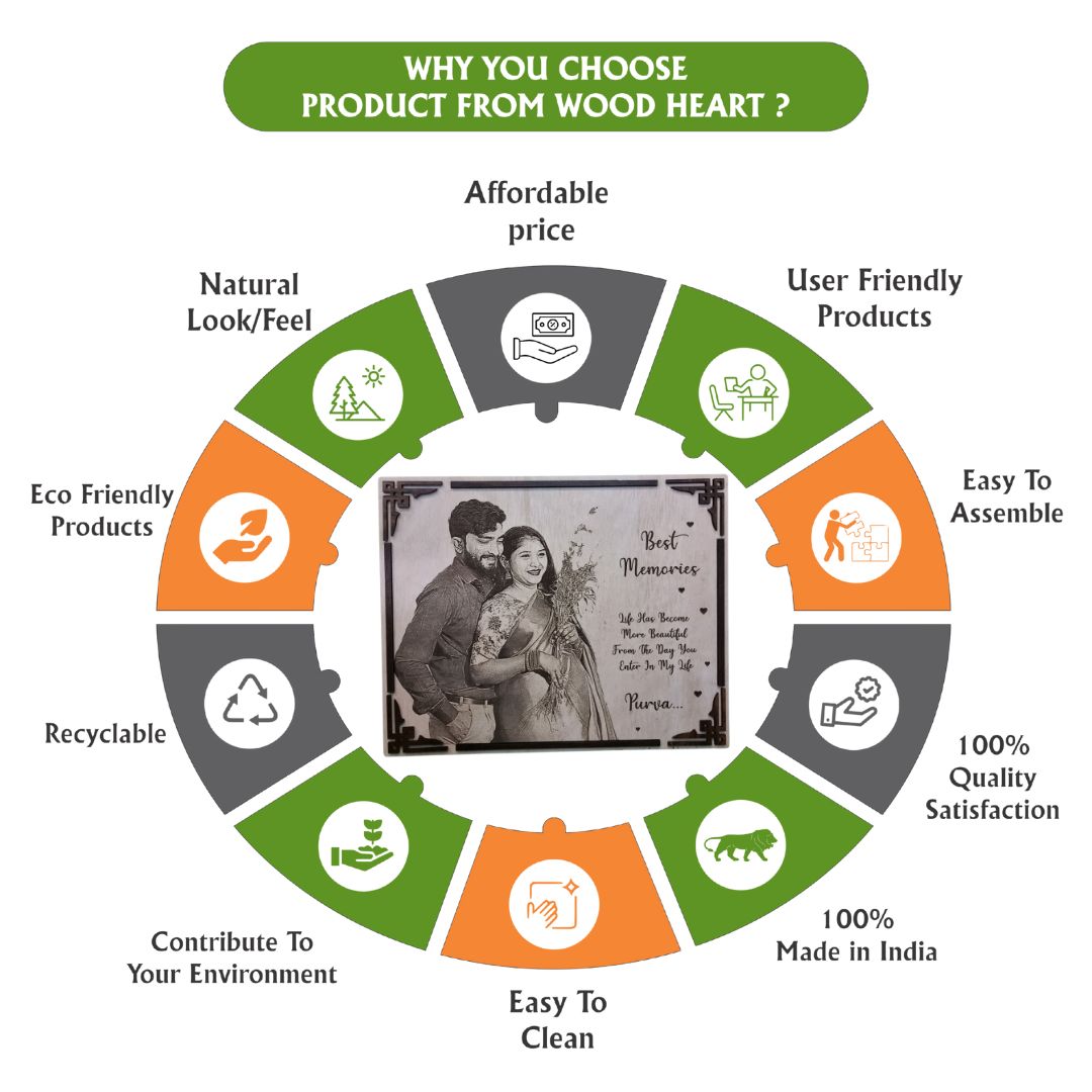 Capture your most cherished moments with the Wood Heart Personalized “Best Memories” Wooden Engraved Plaque. Thoughtfully designed with a heartfelt message and elegant engraving, this plaque immortalizes your love story on natural wood. Perfect for gifting your partner on anniversaries, birthdays, or special occasions, it adds a rustic yet romantic charm to any space. Each plaque is laser-engraved with precision to ensure your photo and message stay vivid for years to come — a timeless keepsake of love and togetherness.
