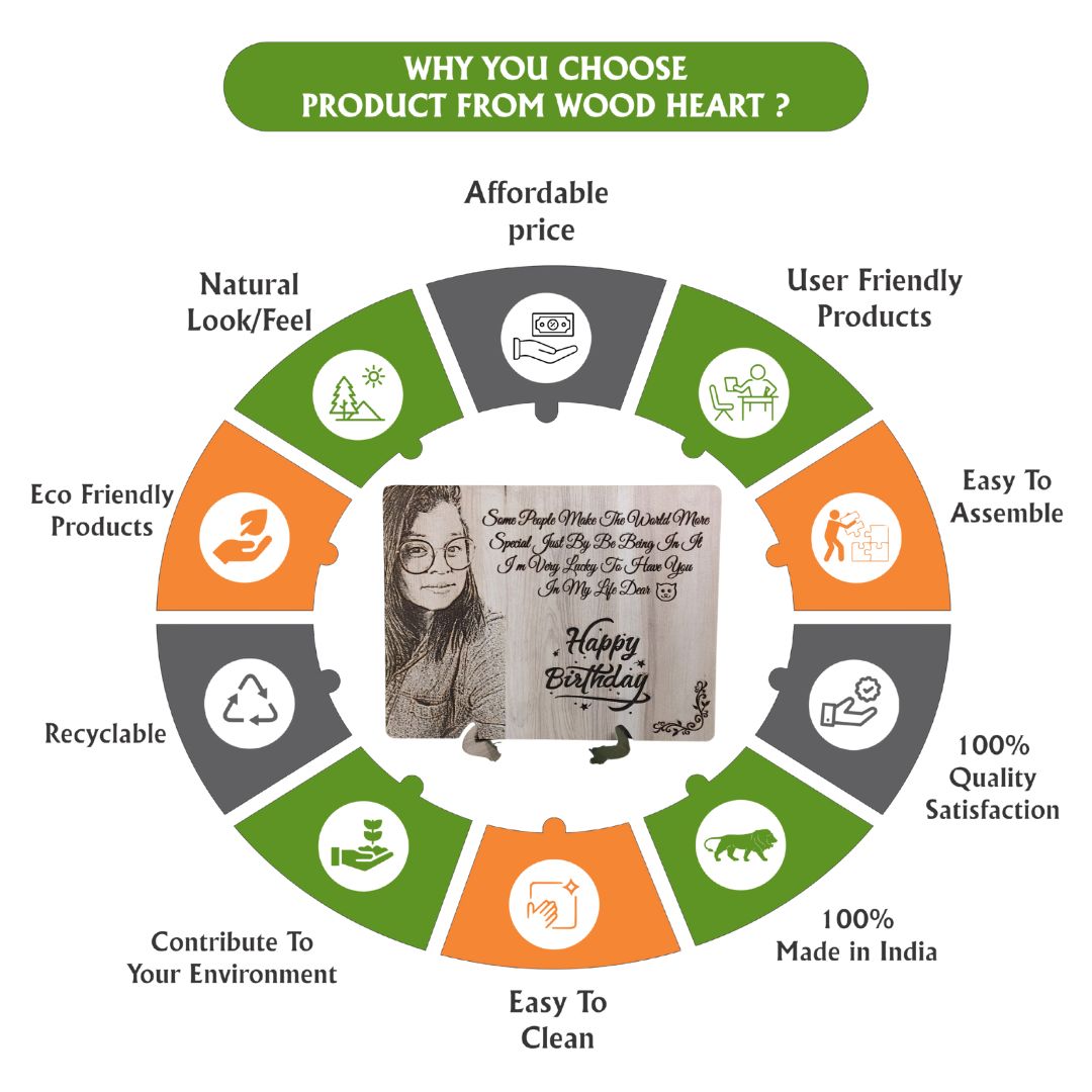Celebrate special moments with this beautifully Personalized Wooden Birthday Photo Frame. Crafted from premium quality wood, this engraved frame is a perfect way to express your love and appreciation. You can customize it with a photo and special message, making it a thoughtful keepsake for birthdays. The laser engraving ensures long-lasting print with a classy, rustic look that enhances any home or office décor.