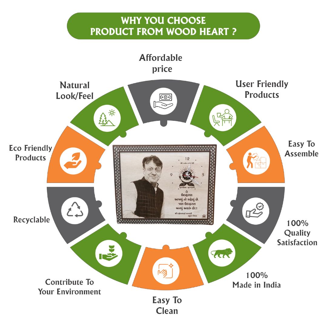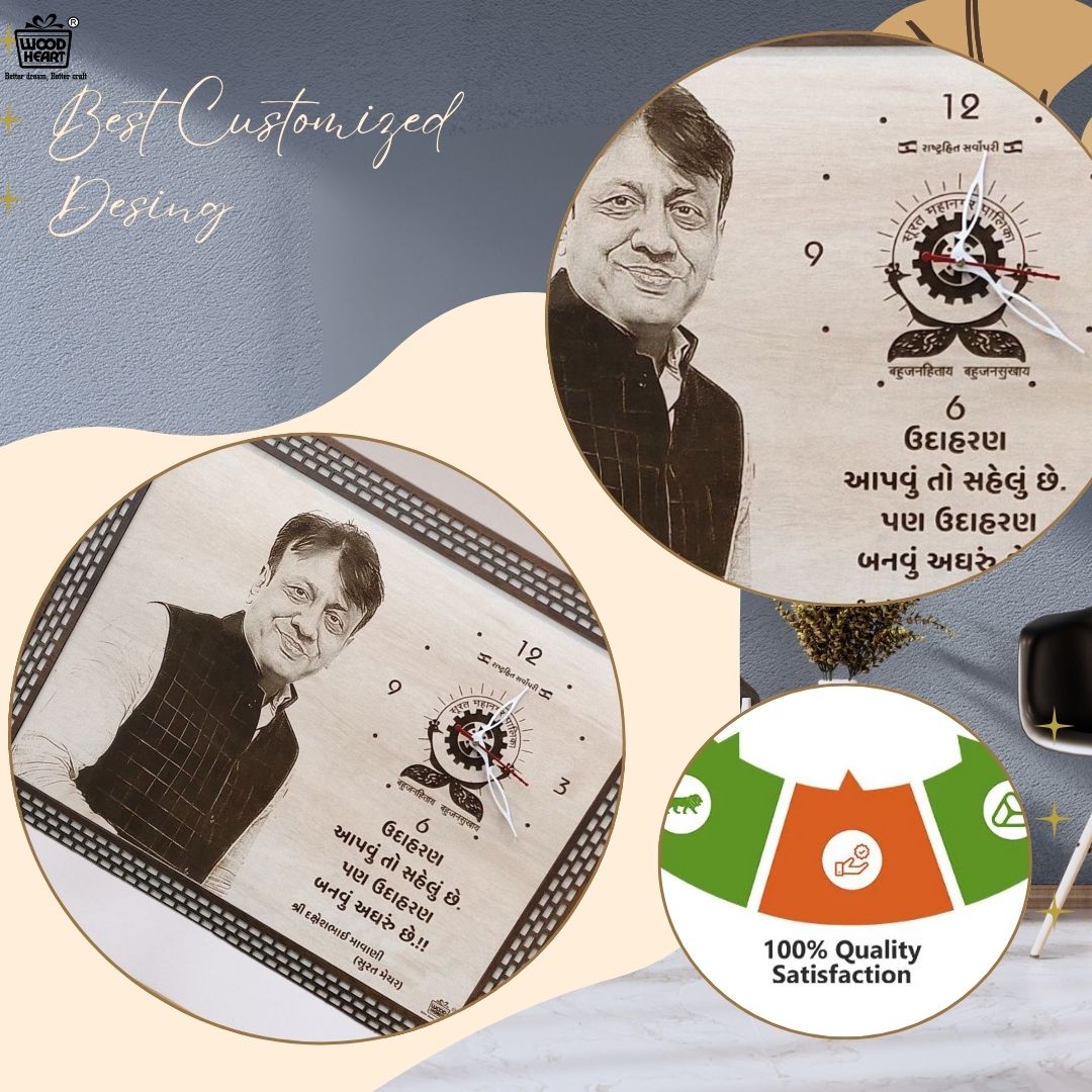 Celebrate your special moments with this Personalized Wooden Engraved Photo Clock by Wood Heart. Expertly crafted from high-quality wood, this custom wall clock combines elegant design with a personal touch. Your favorite photo and text are beautifully laser-engraved, creating a timeless keepsake that’s perfect for offices, homes, or gifting. Ideal for commemorating achievements, honoring leaders, or celebrating milestones — this unique piece adds sophistication and meaning to any space.