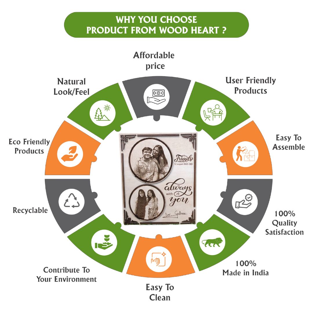 Celebrate the beautiful bond of friendship with this Personalized Wooden Friends Forever Engraved Photo Frame. Featuring two beautifully engraved photos and heartfelt messages like “Always with you” and “Friends Forever”, this plaque perfectly captures memories that last a lifetime. It’s a heartfelt keepsake, ideal for gifting to your best friend on birthdays, Friendship Day, or just to show appreciation.