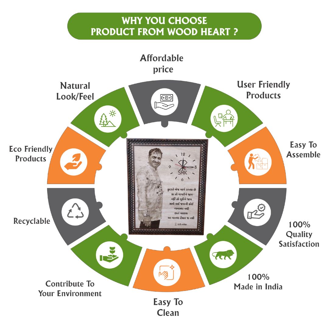 Celebrate special moments with this Personalized Wooden Photo Frame with Clock from Wood Heart — a perfect fusion of elegance and emotion. Expertly crafted with precision laser engraving, this frame beautifully captures your chosen photograph and text, making it an ideal keepsake for offices, homes, or gifting. The integrated clock adds a functional and aesthetic touch, turning your cherished memories into timeless decor.