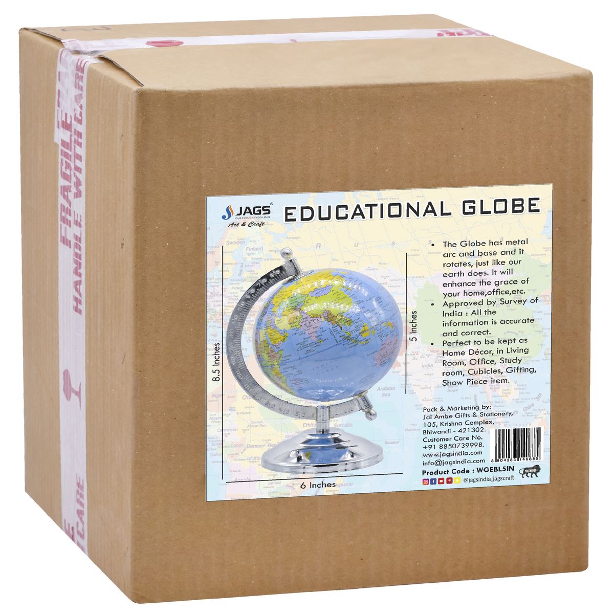 Premium Blue World Globe with Chrome Finish Stand – 5 Inch