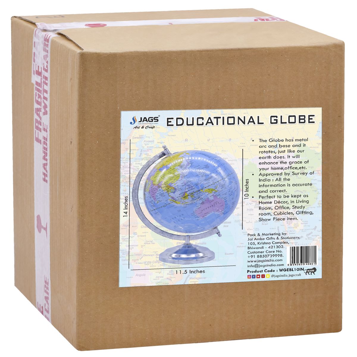 Premium Blue World Globe with Chrome Stand – 10 Inch