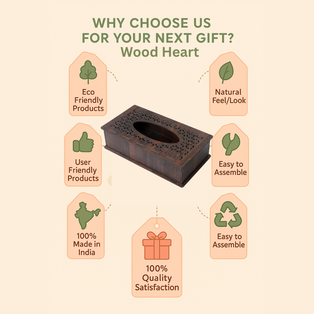 Premium Wooden Tissue Box with Geometric Cutwork Design