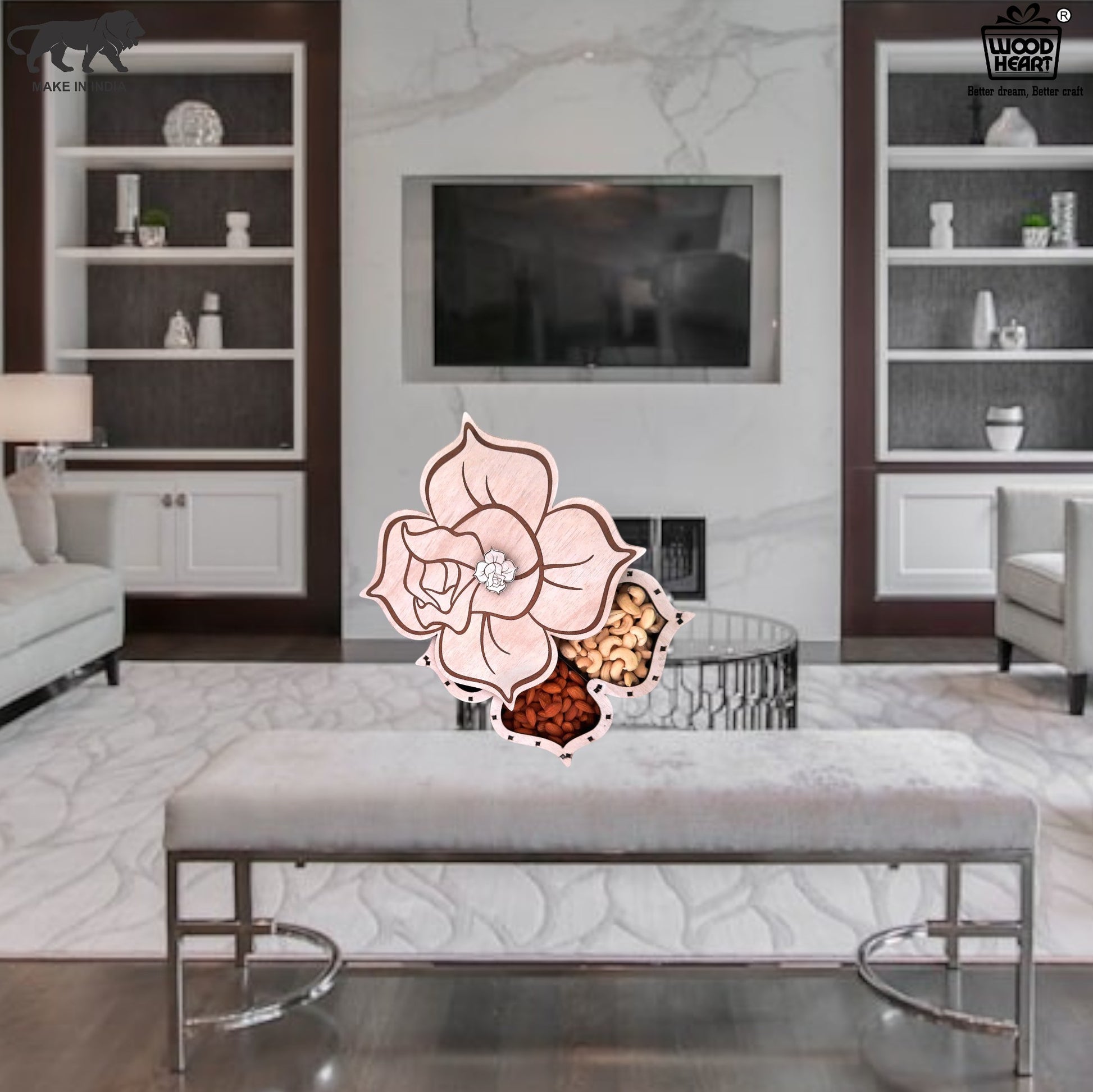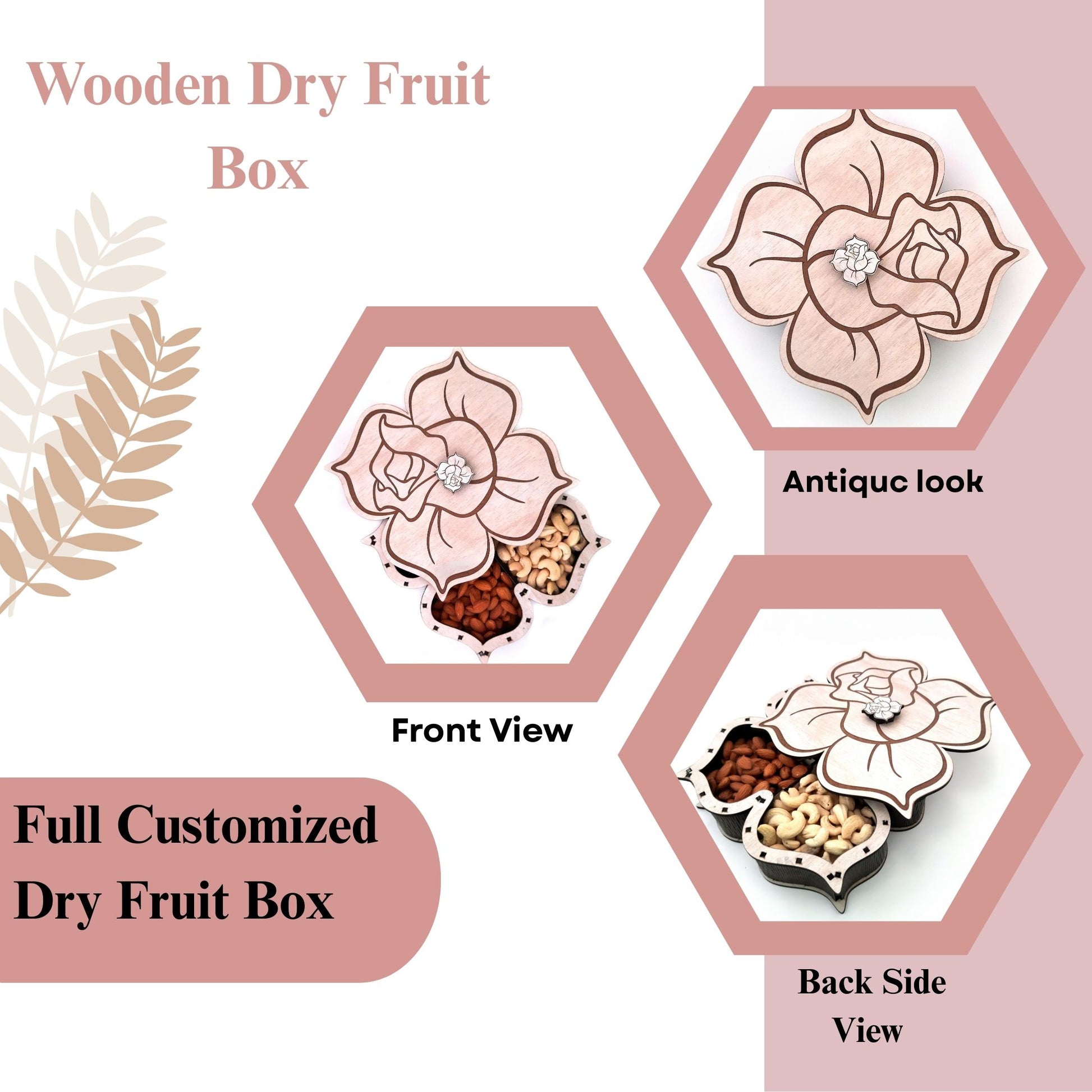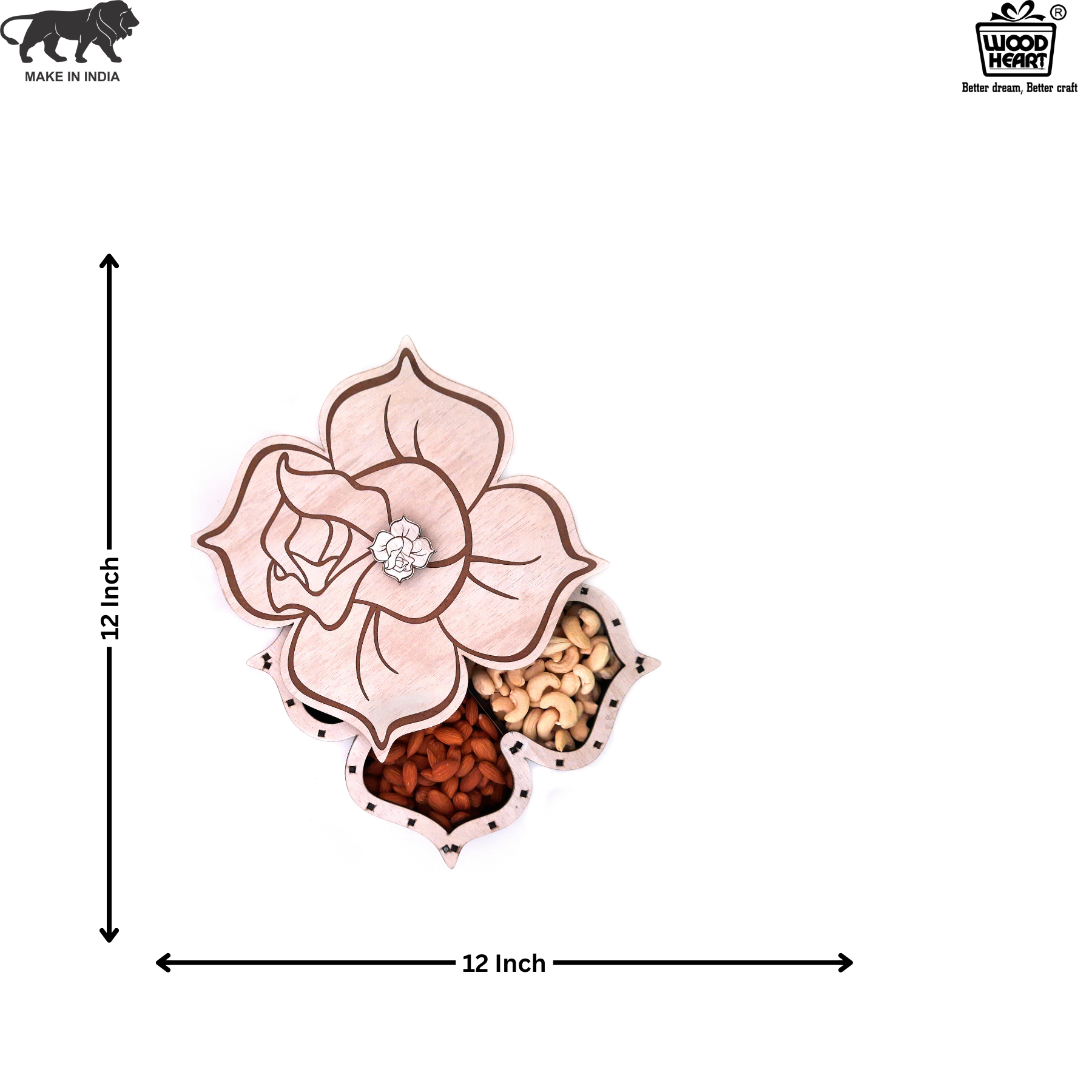 Rose-Themed Wooden Dry Fruit Box with Artistic Petal Lid