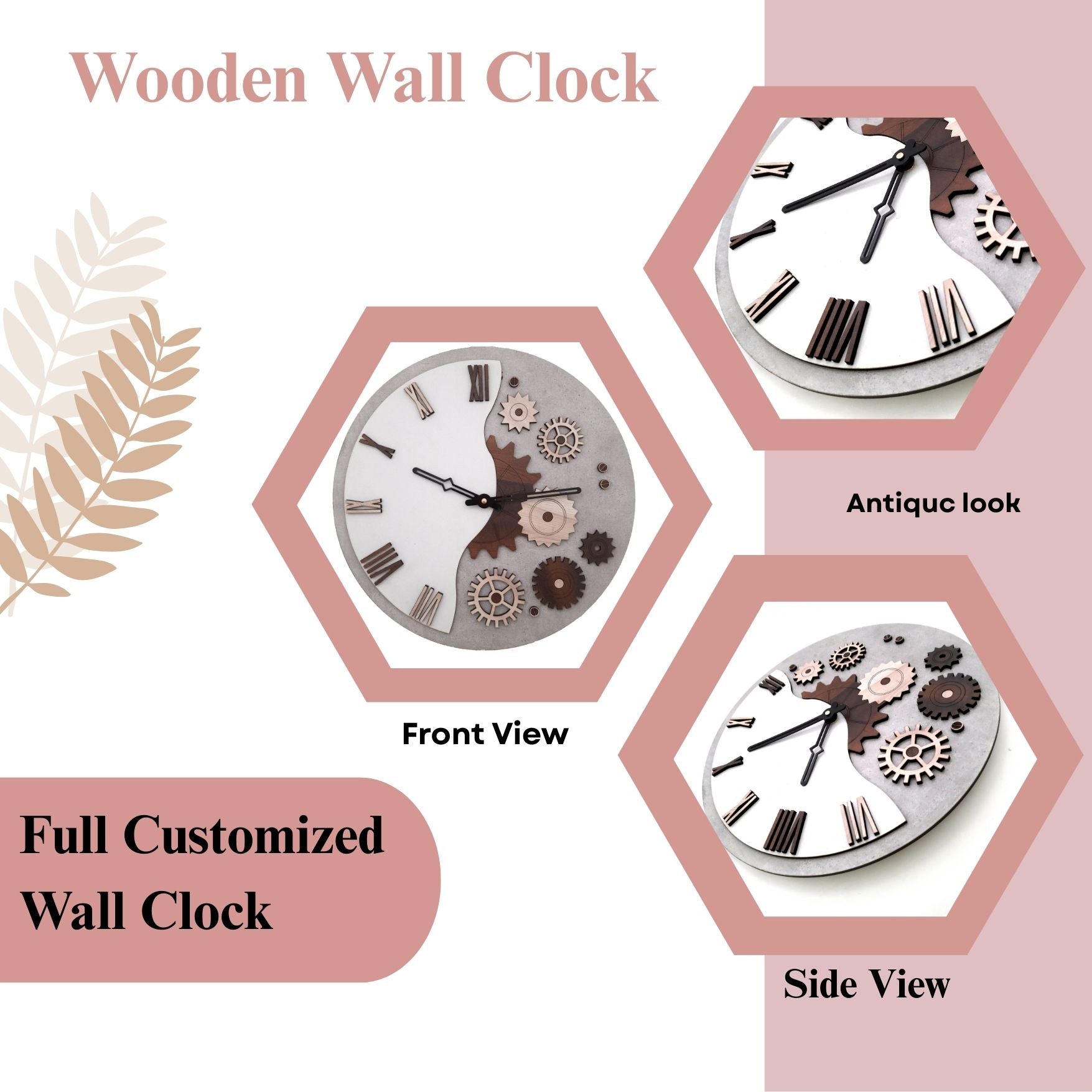Transform your wall into a piece of mechanical art with this steampunk-inspired wall clock from Wood Heart. Featuring a creative half-and-half design – one side minimal with Roman numerals and the other filled with intricate laser-cut wooden gears – this clock is a true statement piece. Perfect for modern, industrial, or themed interiors, this design adds both sophistication and curiosity to any space.