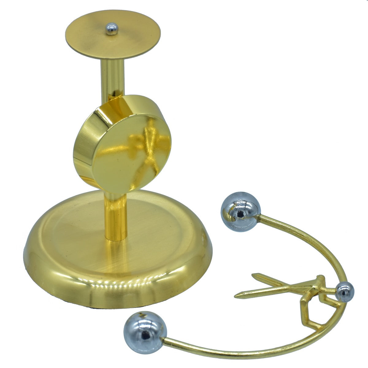 Elevate your desk with this Golden Balancing Man Toy, a fascinating piece of kinetic sculpture and magnetic desk decor. This unique toy features a figure that balances effortlessly between two metal spheres, demonstrating physics in motion. It's an ideal desk accessory for relieving stress, sparking curiosity, or simply adding a creative touch to your workspace.