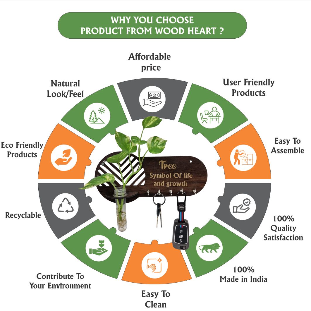 Bring nature and utility together with the WoodHeart™ “Tree of Life” Wall-Mount Test Tube Planter with Key Holder. Featuring a beautifully engraved “Tree – Symbol of Life and Growth” design, this decor piece adds an earthy, welcoming vibe to your space. The clear glass test tube is perfect for fresh cuttings or floral stems, while multiple metal hooks neatly organize your keys, masks, or small accessories. A perfect balance of style and function for your entryway, kitchen, or office.