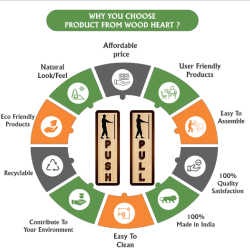 A premium vertical pair of wooden door signs featuring silhouette human figures to indicate “Push” and “Pull.” Designed with a contrasting wood finish and bold vertical lettering, these signs offer both clarity and style, making them ideal for offices, restaurants, cafes, and commercial spaces.