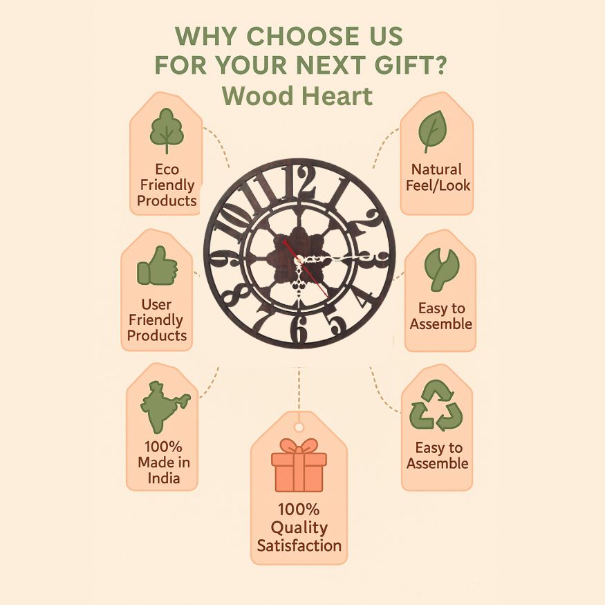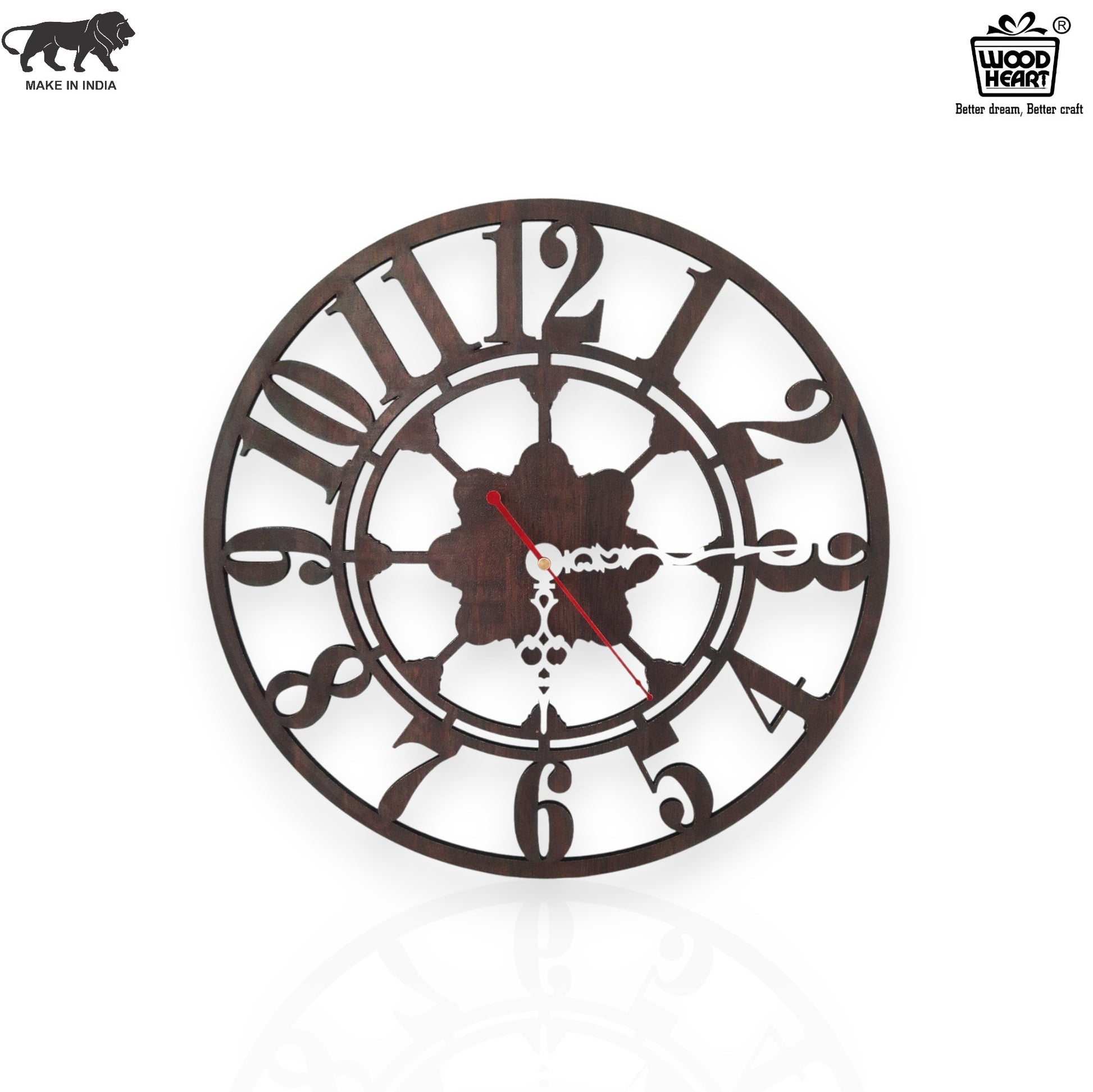 Vintage Floral Wooden Wall Clock – Laser Cut Roman Style by Wood Heart