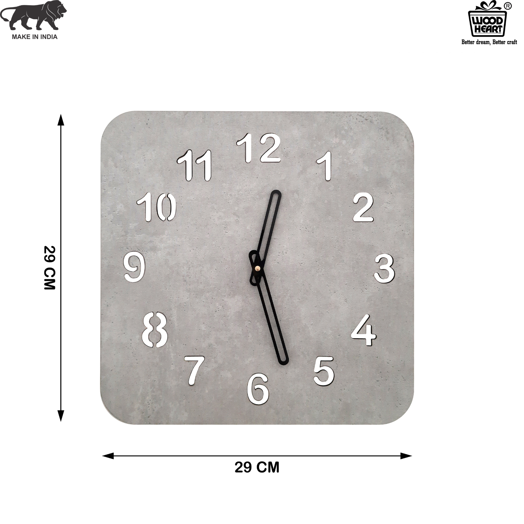 Wood Heart Modern Grey Concrete-Finish Square Wall Clock – Minimalist Décor Accent