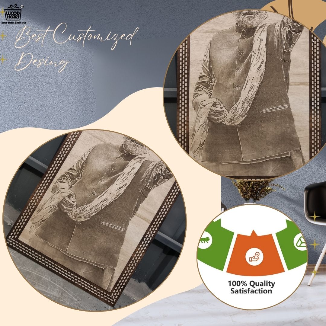 Celebrate timeless moments with this Wooden Engraved Portrait Frame — a beautifully handcrafted masterpiece by Wood Heart. This elegant plaque features a laser-engraved portrait on premium MDF wood, capturing every detail with precision and warmth. The artistic border enhances its classic appeal, making it perfect for display in homes, offices, or gifting on special occasions. Whether it’s a tribute, milestone, or keepsake, this engraved wooden frame stands as a symbol of elegance, respect, and fine craftsmanship.