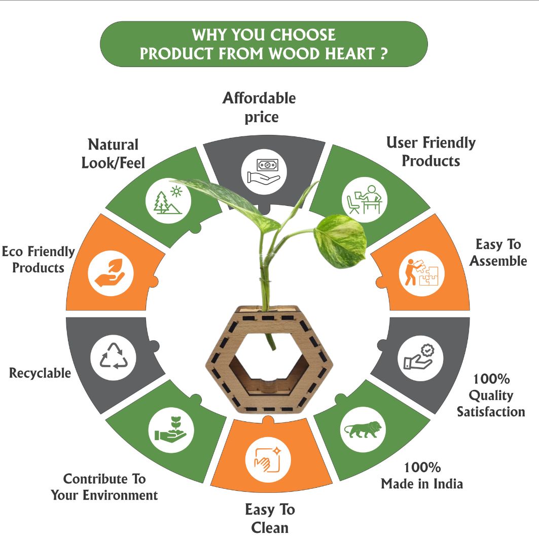 Bring a modern and elegant vibe to your space with this Wooden Hexagon Tabletop Planter. Featuring a sleek hexagonal wooden frame and a transparent glass tube, it’s perfect for showcasing hydroponic plants, fresh flowers, or plant cuttings. Its minimalist design blends beautifully with any décor, making it ideal for desks, shelves, or center tables.