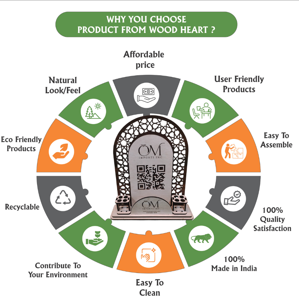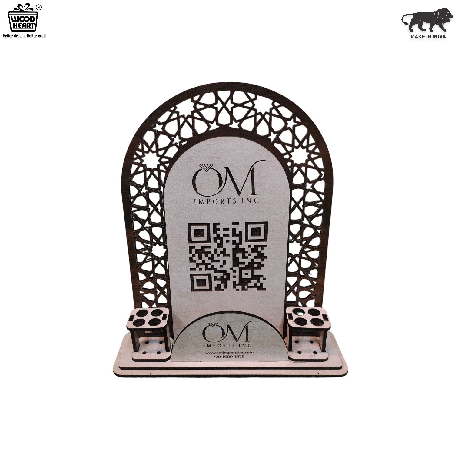Wooden Laser-Cut Mobile Stand with Pen Holder & QR Display – OM Imports INC