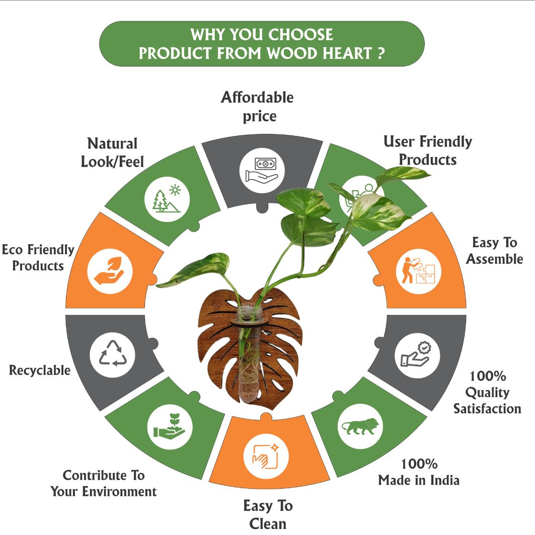 Add a touch of natural elegance to your home with this beautifully crafted Wooden Leaf Wall Hanging Planter. Designed with a laser-cut leaf pattern and paired with a transparent glass tube, it’s perfect for hydroponic plants, cuttings, or small floral arrangements. Ideal for enhancing living rooms, offices, balconies, or entryways, this wall planter blends rustic charm with modern minimalism.