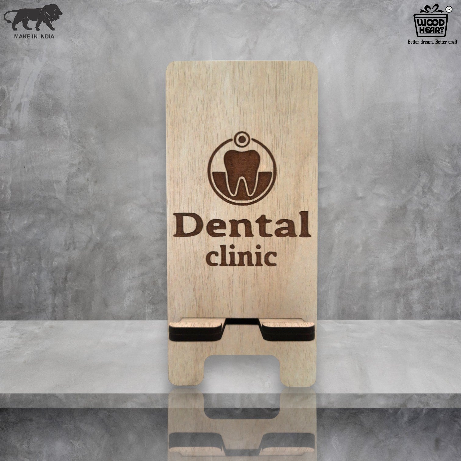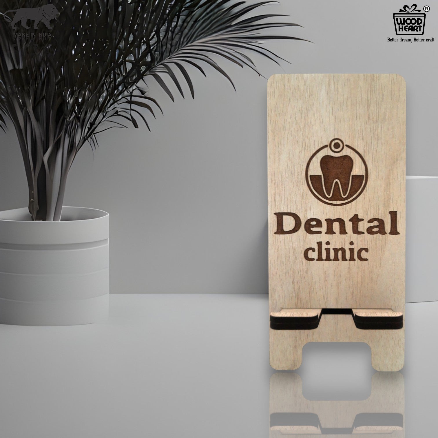 Wooden Mobile Stand – Dental Clinic Logo Engraved