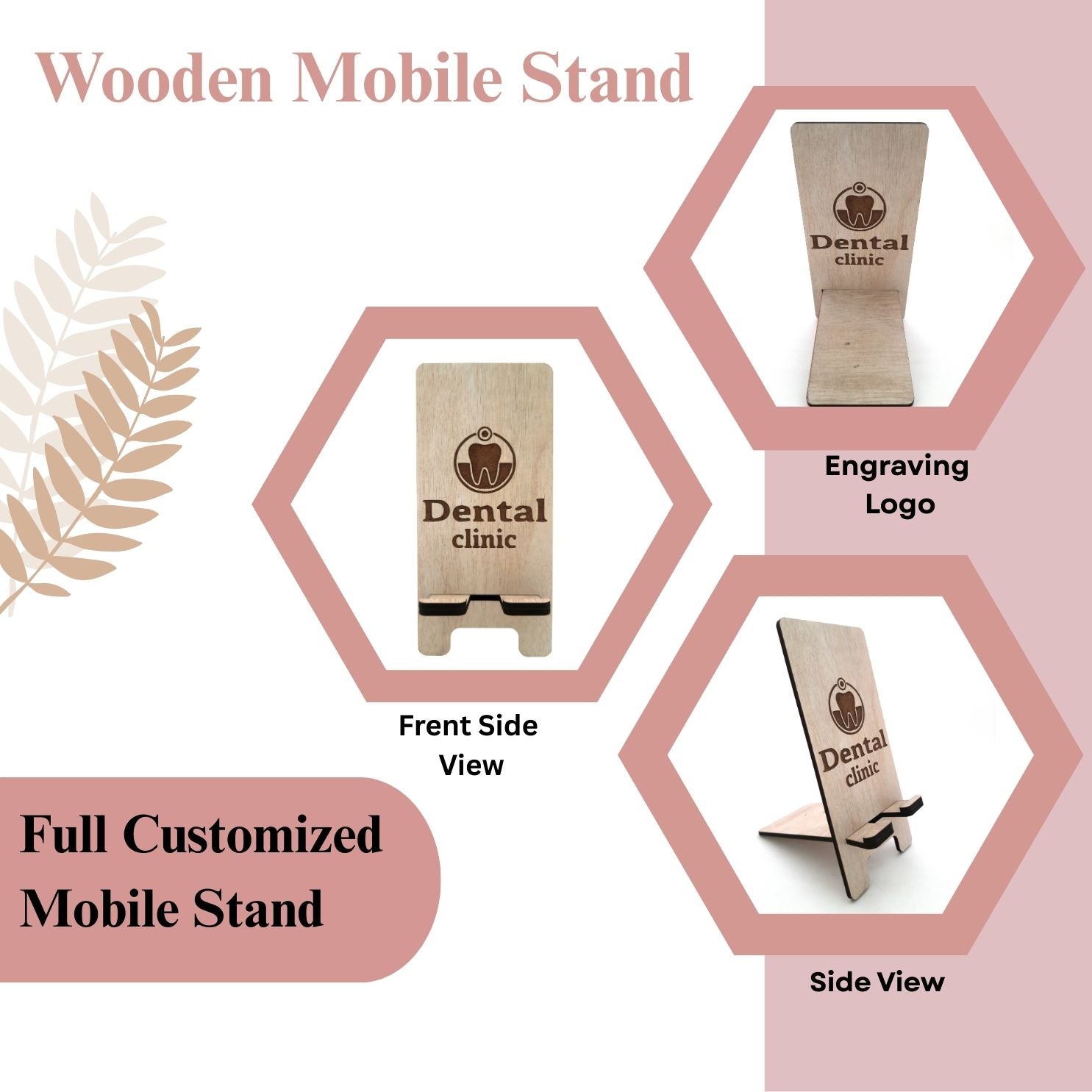 Add a professional and personalized touch to your dental workspace with this Wooden Mobile Stand engraved with a Dental Clinic logo. Crafted from durable MDF wood and precision laser-cut, this phone holder is not only functional but also stylish.