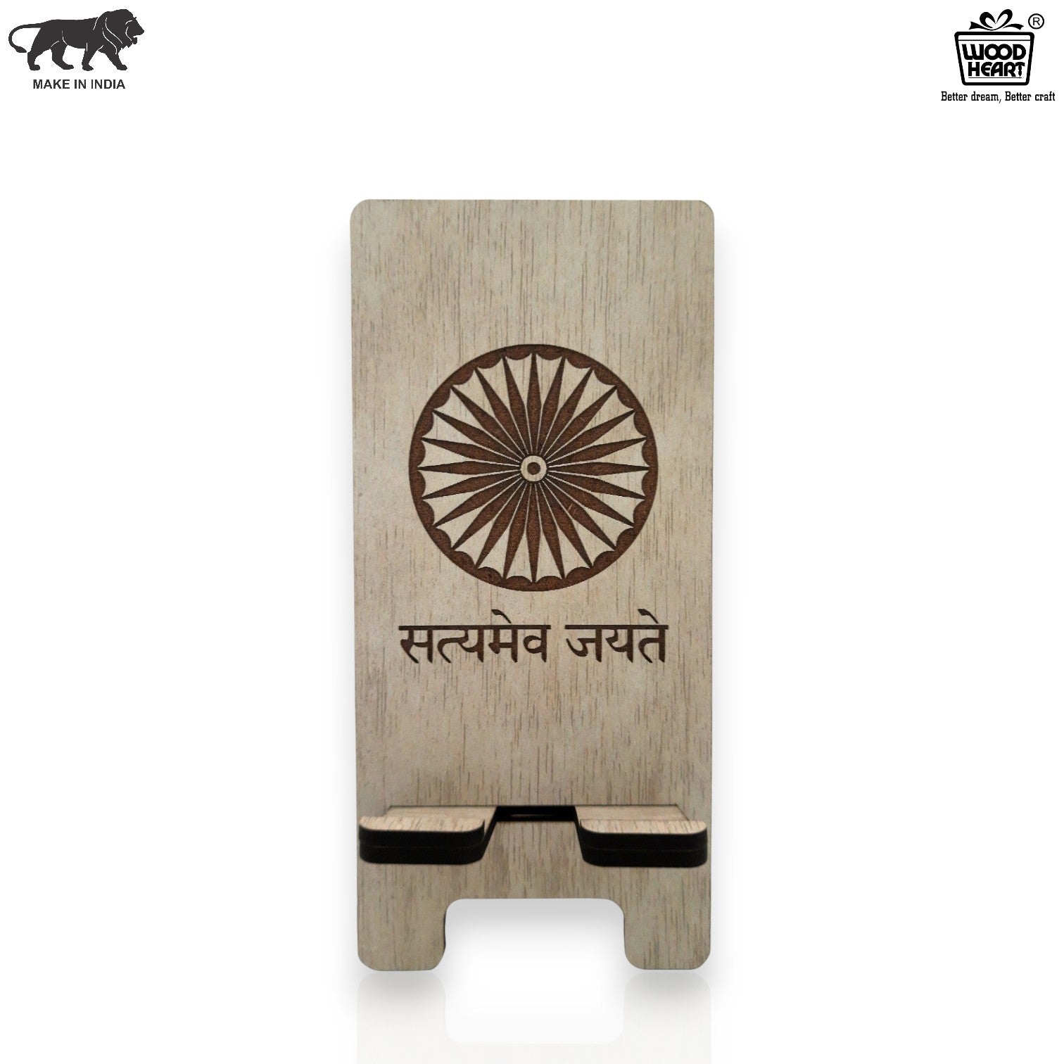 Wooden Mobile Stand with Ashoka Chakra & "Satyamev Jayate" Engraving