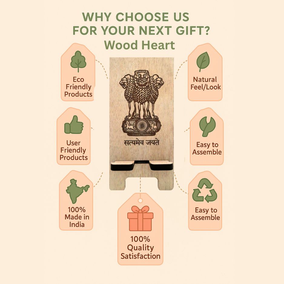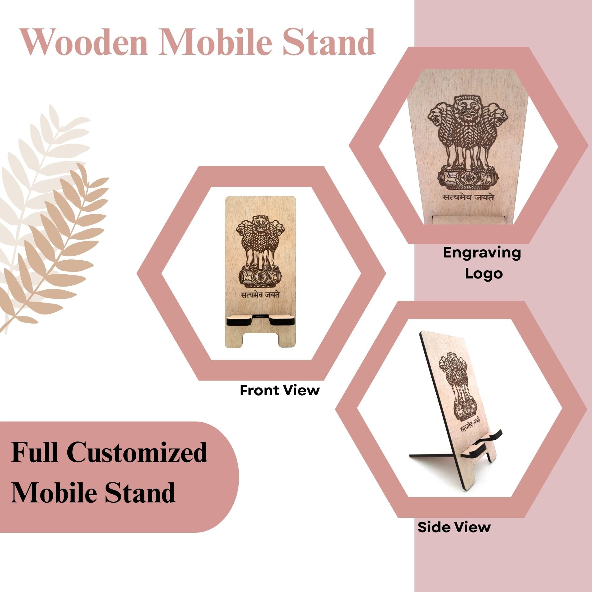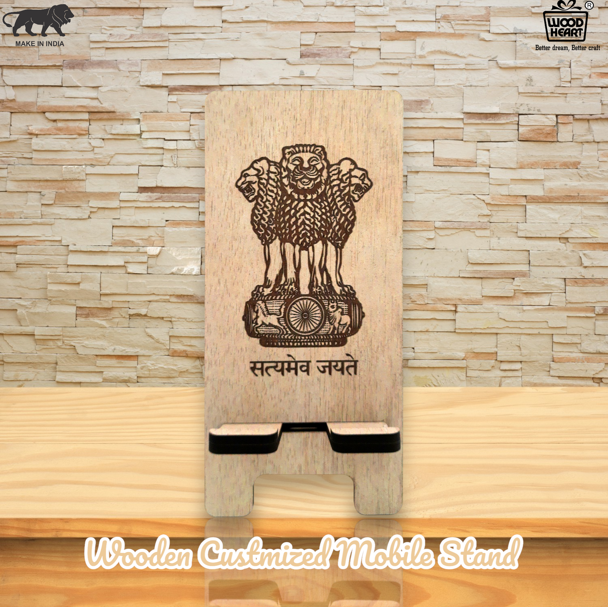 Wooden Mobile Stand with Ashoka Pillar Laser Engraving – Satyamev Jayate Design