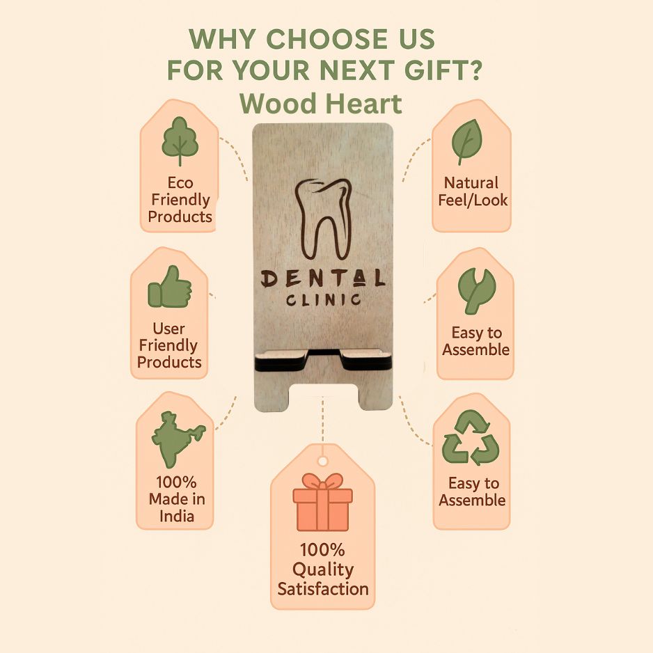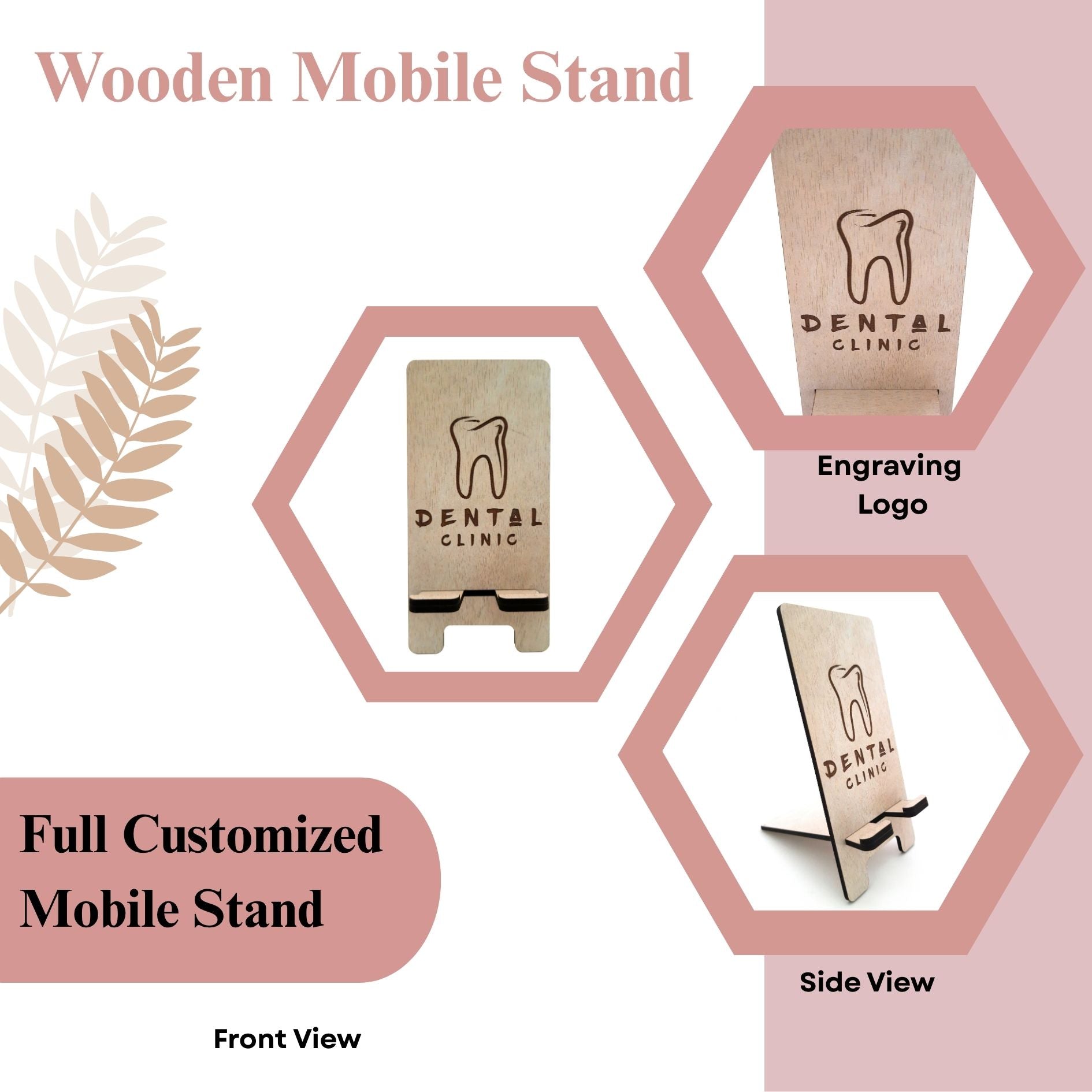 Wooden Mobile Stand with Dental Clinic Engraving – Tooth Design Holder
