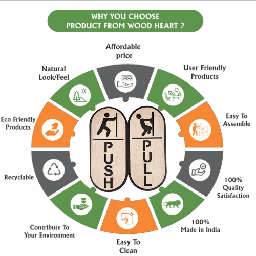 Wooden Push & Pull Door Sign Board – Rounded Vertical Design