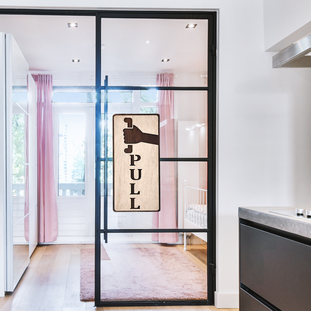 Wooden Push & Pull Door Sign Set with Hand Illustrations