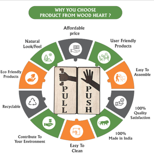 A stylish and functional pair of wooden door signs featuring “PUSH” and “PULL” instructions with clear hand action illustrations. Designed to enhance clarity and aesthetic appeal, these signs are perfect for cafes, restaurants, offices, and boutiques, ensuring customers know exactly how to operate the door while adding a rustic charm to the entrance.