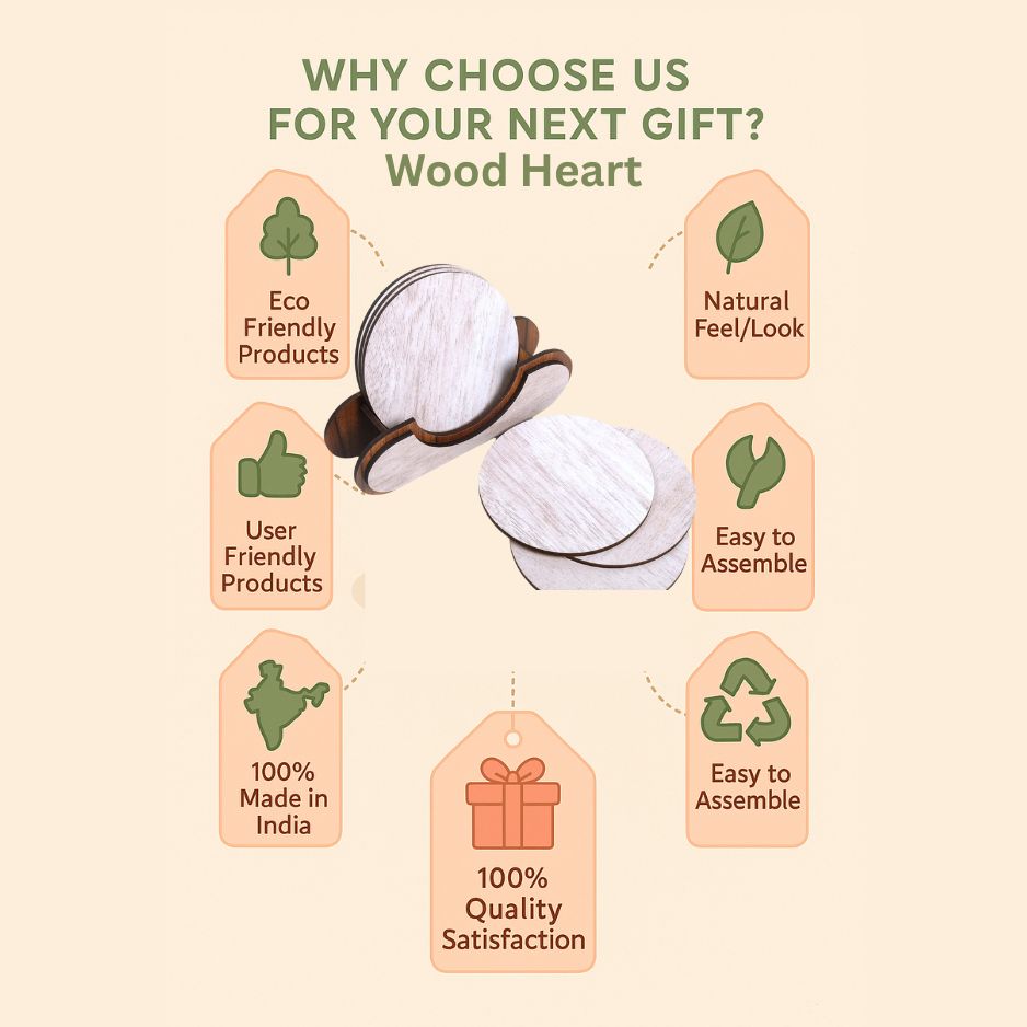 Elevate your table setting with this stylish round coaster set, crafted from premium wood and finished with a rustic whitewashed texture. The matching holder keeps your coasters neatly stacked and ready for use, while the smooth surface protects your furniture from drink rings and stains. Perfect for both casual and formal gatherings, this set blends functionality with timeless design.