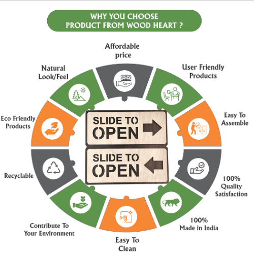 Wooden “Slide to Open” Door Sign Board – Left & Right Arrow Set