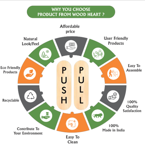 Minimalist wooden door signs with a vertical layout displaying “PUSH” and “PULL” in bold black letters. Designed for clarity and style, these signs bring a sleek, modern touch to doors while ensuring easy navigation in offices, cafes, hotels, and other commercial spaces.