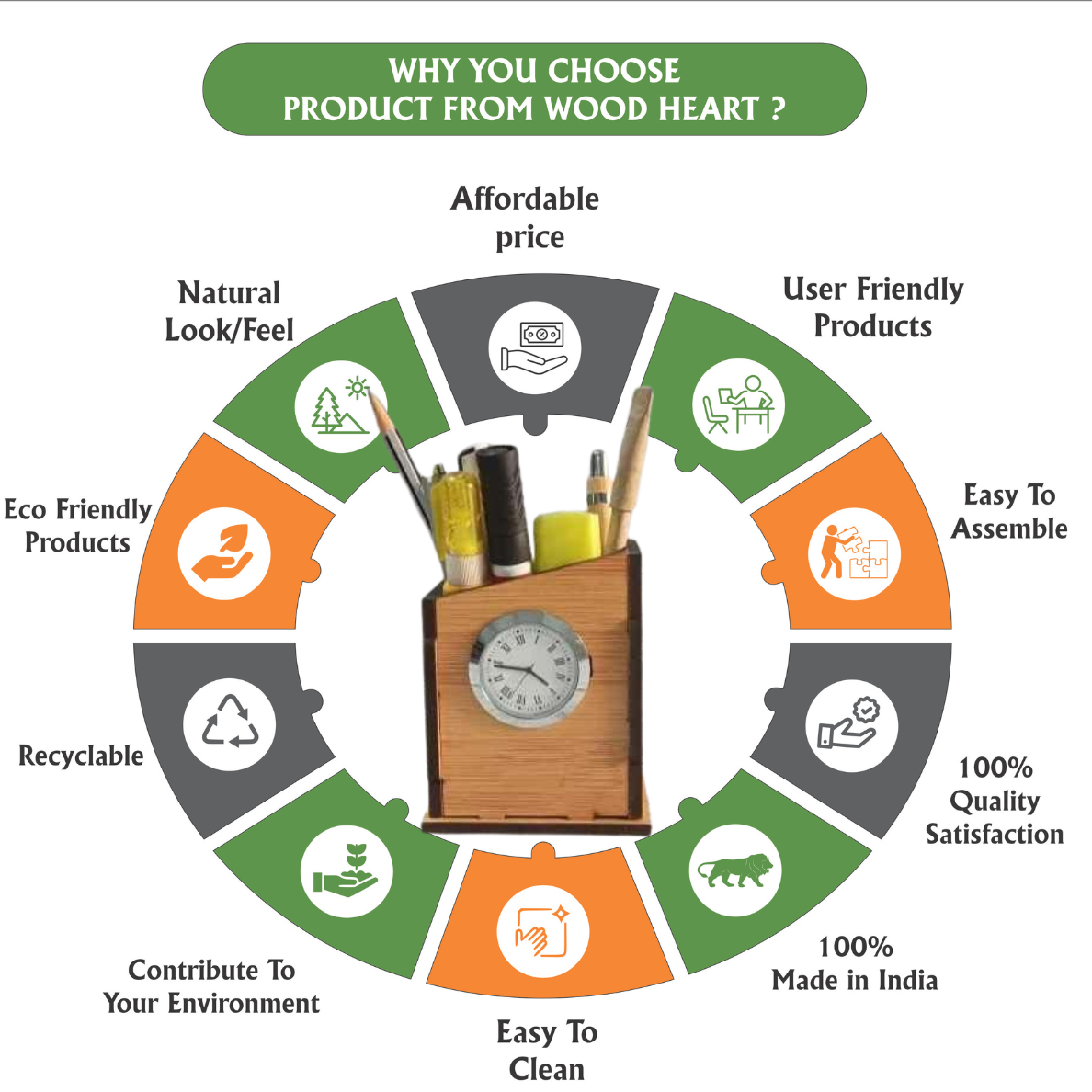 WoodHeart Asymmetric Wooden Desk Clock